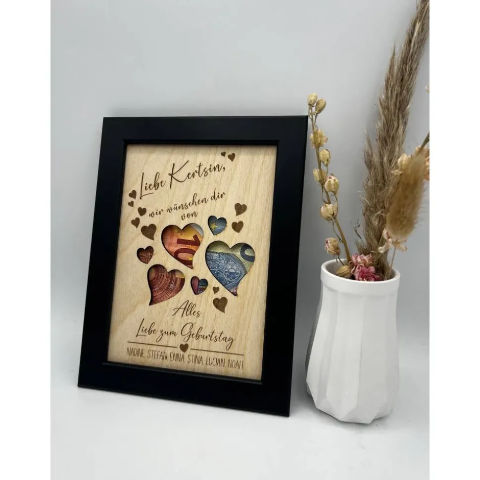 Verleihe deinem Geldgeschenk eine persönliche Note – mit dem liebevoll gestalteten Bilderrahmen von Dekoschuppen Rendsburg!