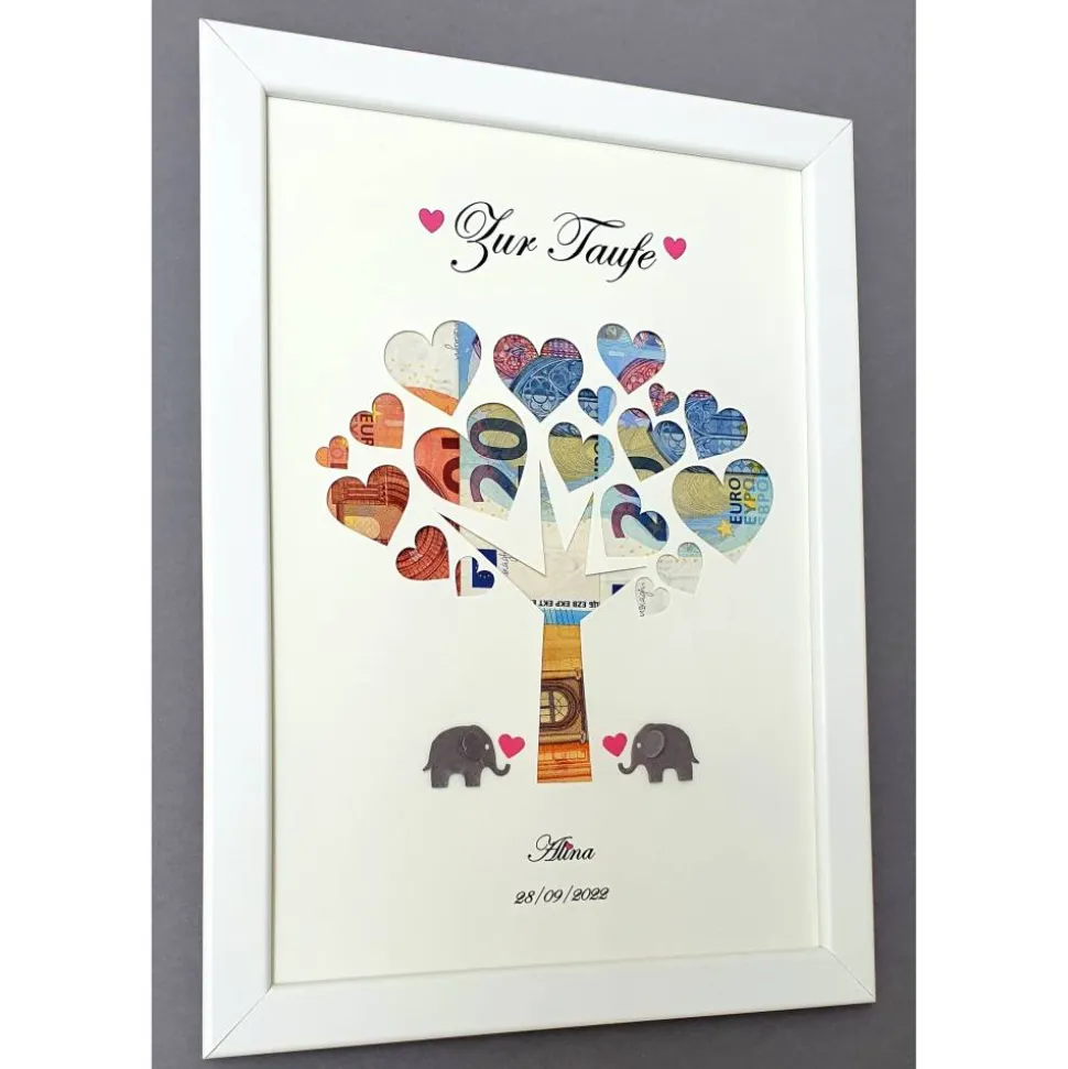 Den gewünschten Geldbetrag können Sie einfach zwischen dem Bild und dem grauen Karton hinterlegen.