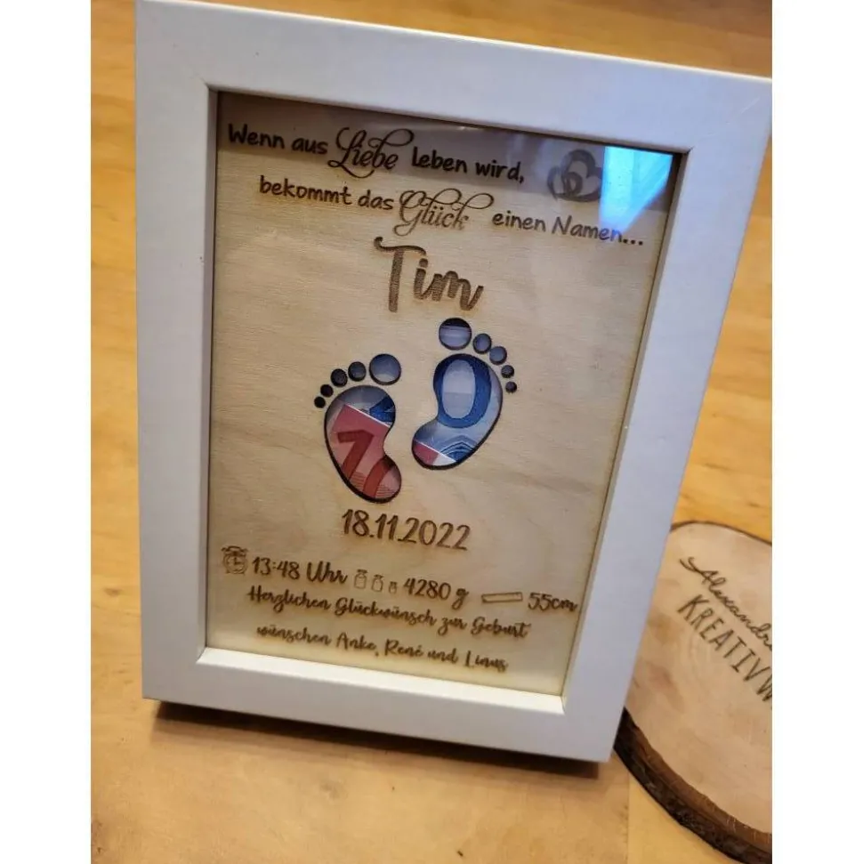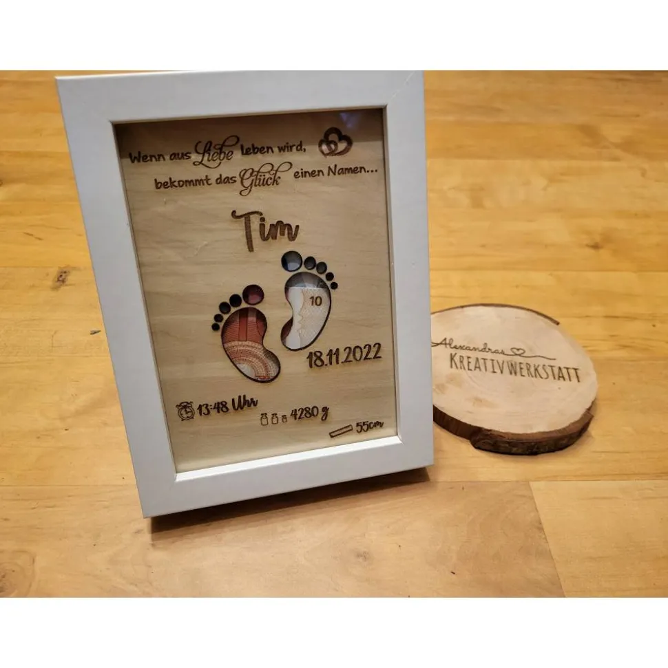Holz ist ein Naturprodukt was sich in der unterschiedlichen Maserung und Farbe widerspiegelt. Es kann dadurch zu Abweichungen zu den Fotos kommen. Es ist deshalb kein Reklamationsgrund. Die Gravur wird mittels eines Lasers aufgebracht.