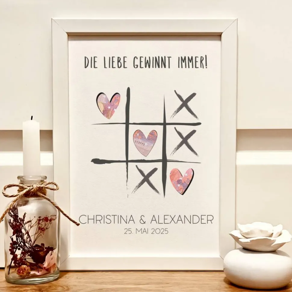 - 1x personalisiertes Tic Tac Toe Hochzeitsbild (A4, 21 x 29,7 cm)