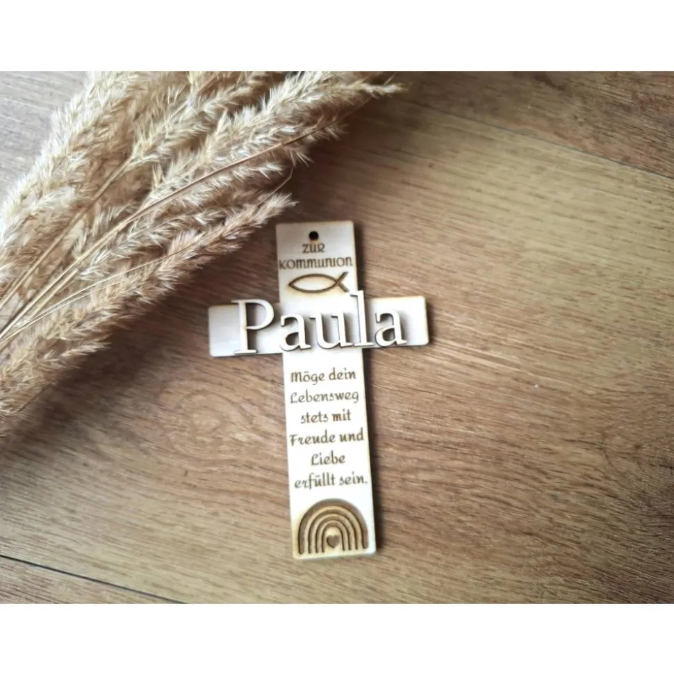 Dieses liebevoll gestaltete Holzkreuz ist ein einzigartiges Geschenk, das bleibt. Verwendet zur Verzierung eines Geschenks, kann es auch danach noch als Dekoration im Kinderzimmer aufgehangen werden. Auch als Tischdekoration geeignet. Gefertigt aus hochwertigem Holz und mit einem aufgesetzten Namenszug in 3D-Optik versehen, wird jedes Kreuz zu einem ganz persönlichen Erinnerungsstück.