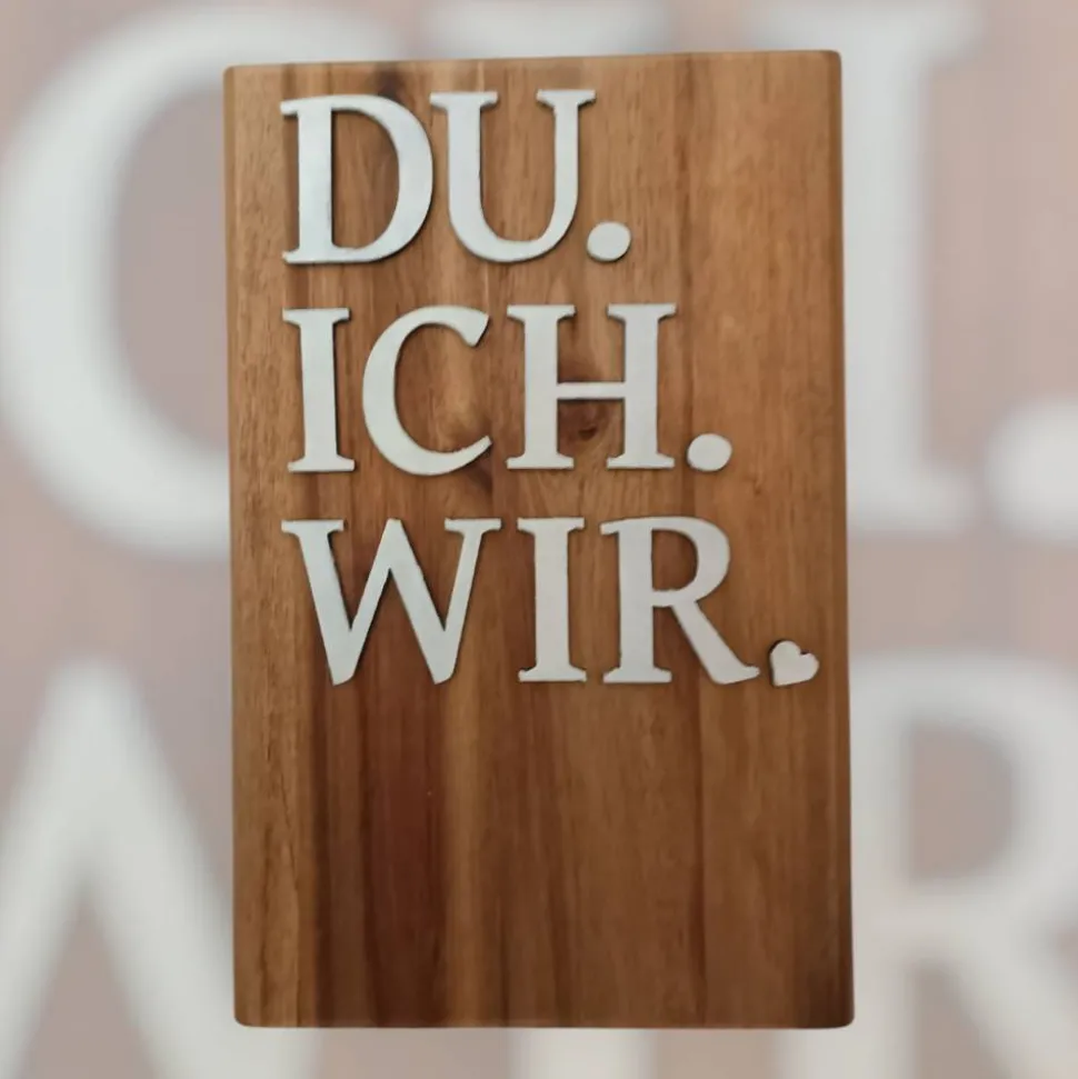Auswahl zwischen dem Schriftzug „DU. ICH. WIR.“ oder einem individuellen Wunschdatum