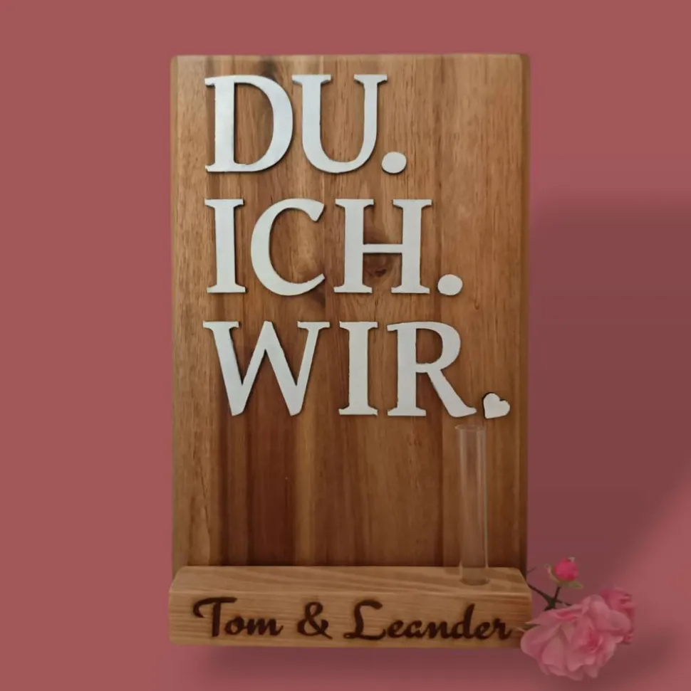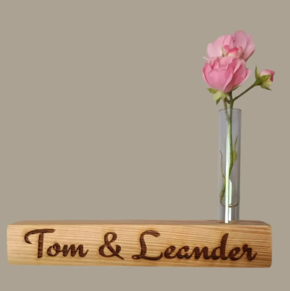 Durch den optionalen Holzsockel mit kleinem Reagenzglas bekommt dein Geschenk eine besonders liebevolle Note: Einfach einen Geldschein oder eine kleine Blume hineinstecken – und fertig ist die persönliche Aufmerksamkeit mit Mehrwert.