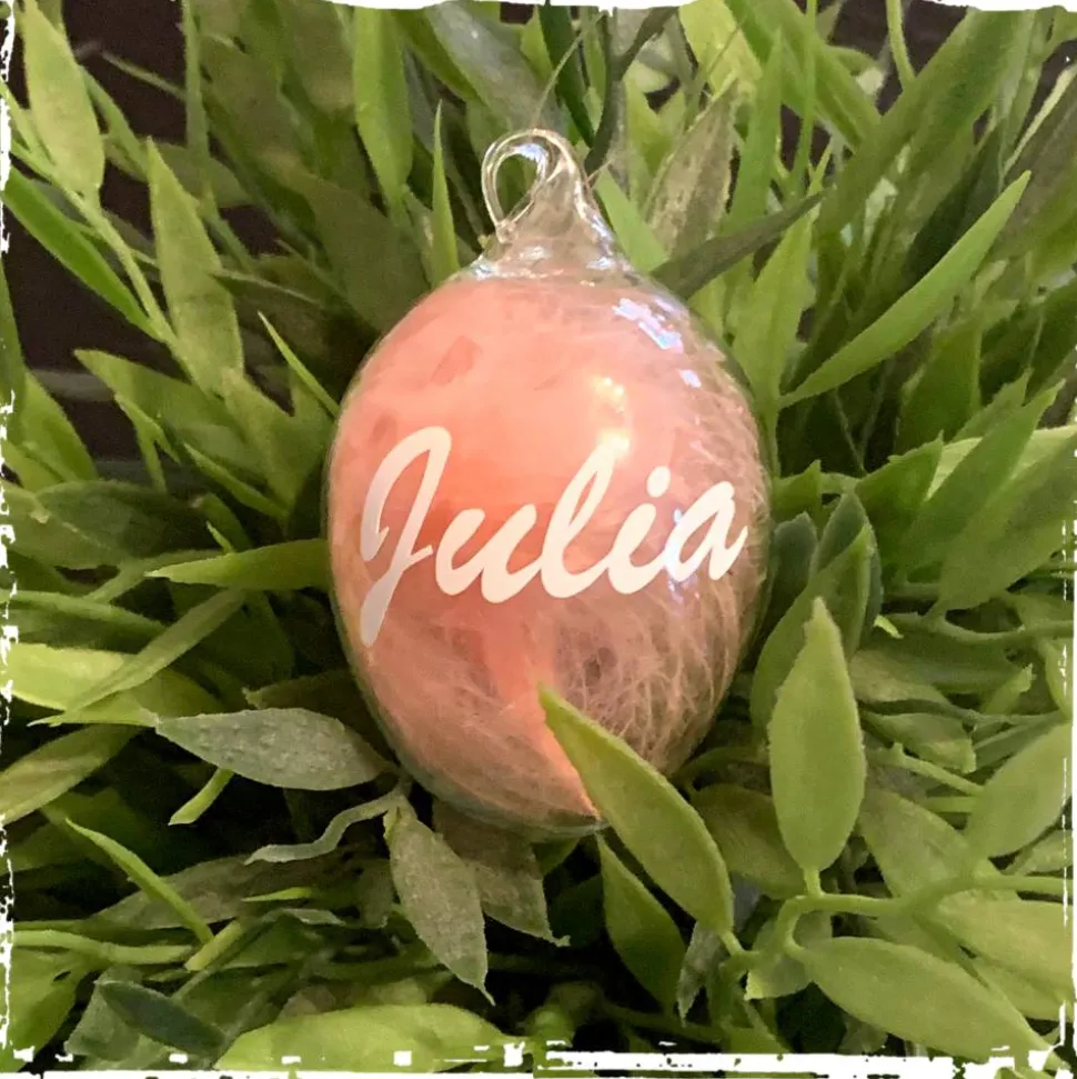 Es hat einen Durchmesser von 6 cm und ist aus Glas – im Inneren befindet sich eine Feder!