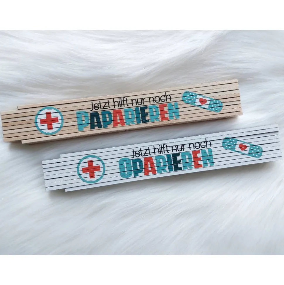 Der Meterstab wird einseitig bedruckt und ist das perfekte Präsent für Vatertag, Geburtstag oder einfach als kleine Aufmerksamkeit für Handwerker und Bastler. Wähle zwischen kreativen Sprüchen wie „Keine Panik! Helmut kann das Reparieren!“, „Wenn Fritz es nicht reparieren kann, kann es keiner!“ oder gebe deinen eigenen Namen an. So entsteht ein ganz persönliches Geschenk, das in keiner Werkzeugkiste fehlen darf.