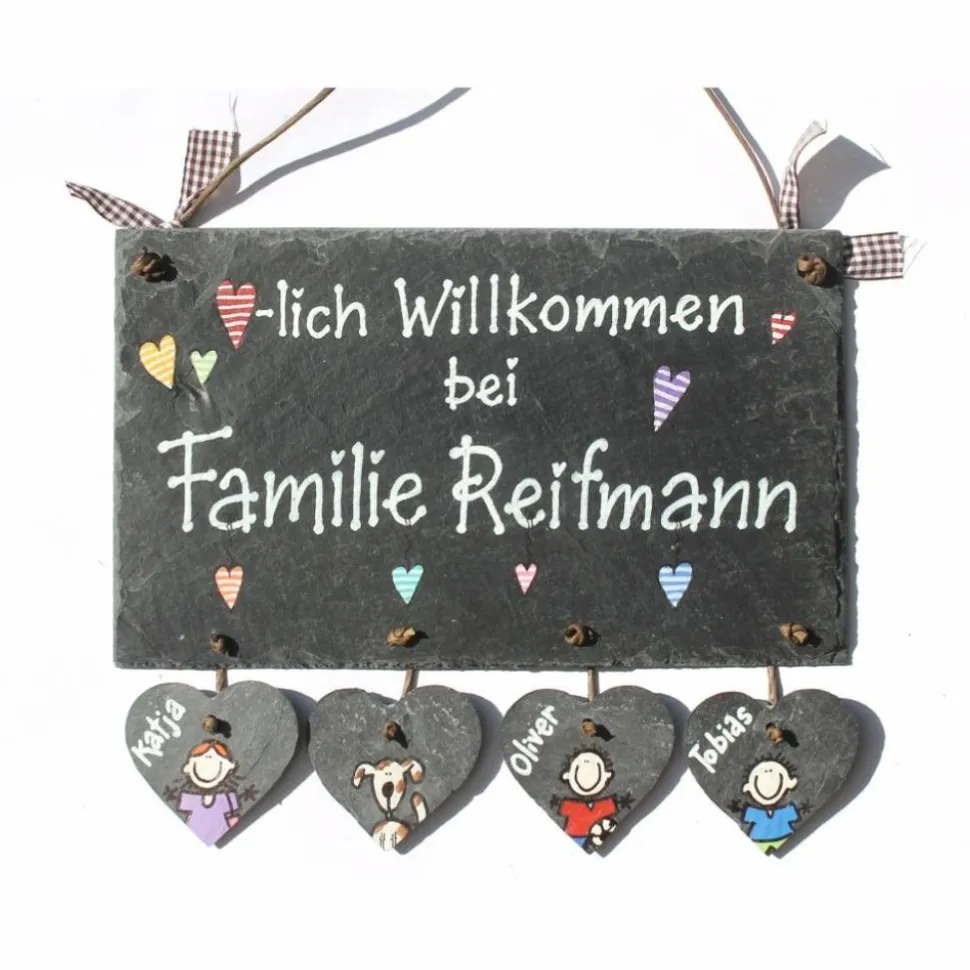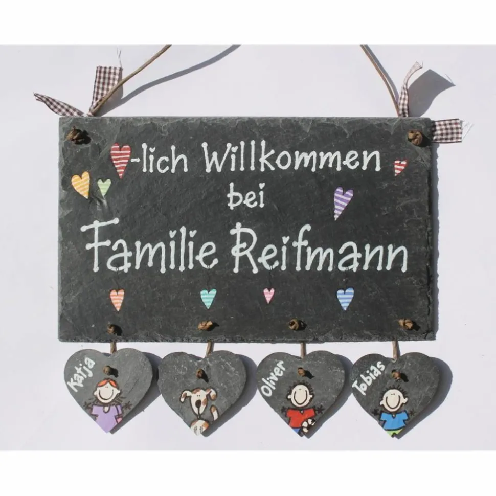 Verleihe deinem Eingangsbereich eine einzigartige Note mit unserem handgefertigten, personalisierten Schiefertürschild für Familien!