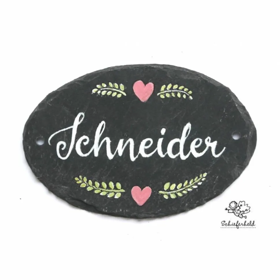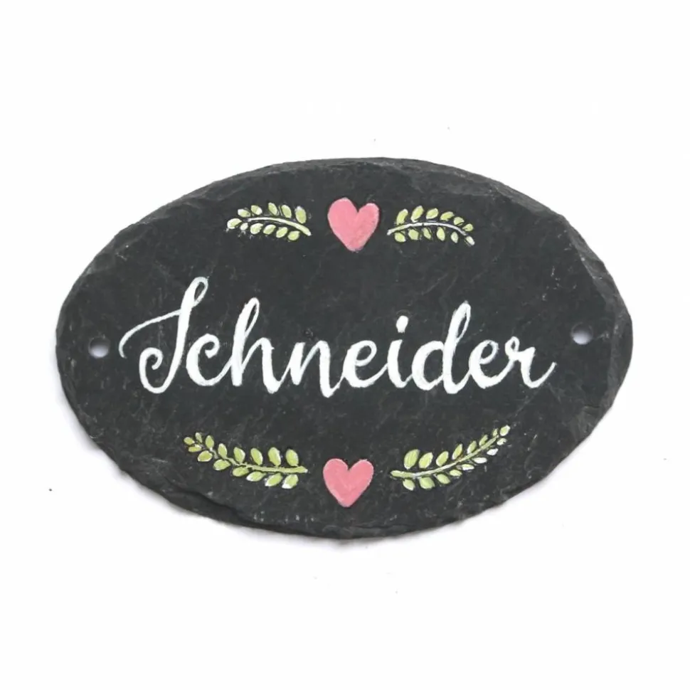 Entdecke das einzigartige, personalisierte Hochzeitsgeschenk: Ein exklusives Türschild aus hochwertigem Naturschiefer, handgefertigt für dich und deine Liebsten. Dieses ovale Schiefertürschild wird mit deinem Familiennamen und einem individuellen Kranz in weiß oder bunt gestaltet – die Varianten findest du bei den Produktfotos!