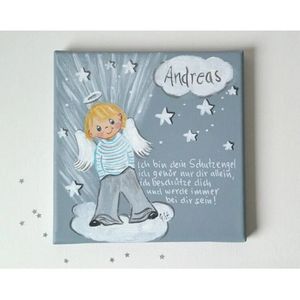 Suchen Sie ein einzigartiges Taufgeschenk für einen Jungen? Dieses handgemalte Schutzengelbild – ist ein bezauberndes Geschenk, das Herzen berührt! 🙂
