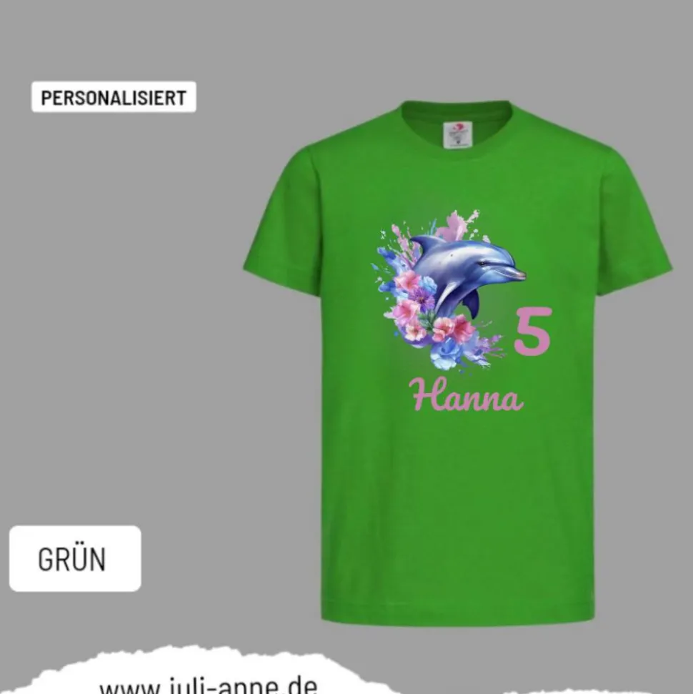 Personalisiertes Shirt GEBURTSTAG Zahl & Name personalisiert Aqua Delfin 2