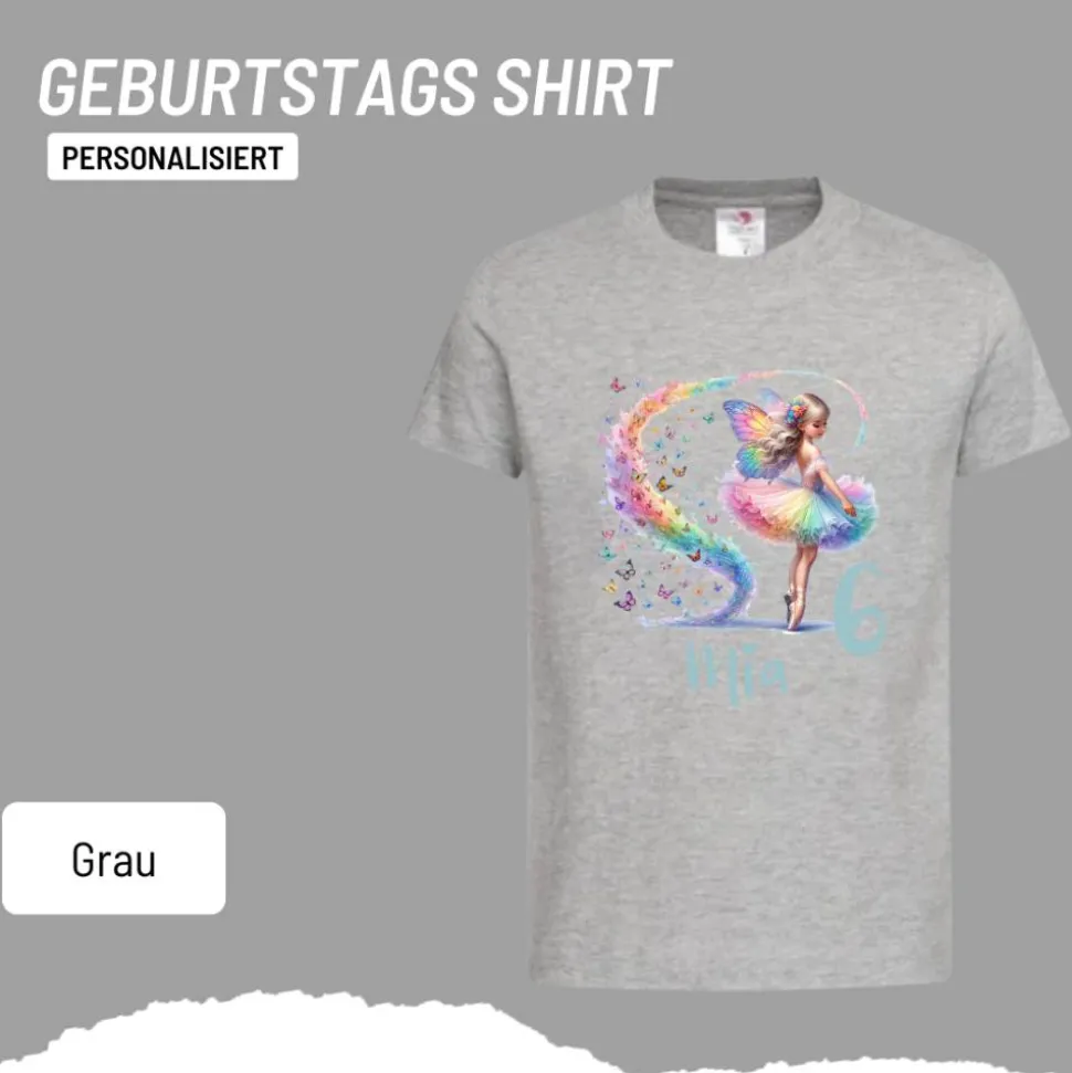 Personalisiertes Shirt GEBURTSTAG Zahl & Name personalisiert ~ Ballerina Fee Bunt Schmetterlinge
