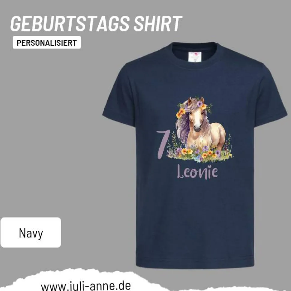 Personalisiertes Shirt GEBURTSTAG Zahl & Name personalisiert Flower Horse