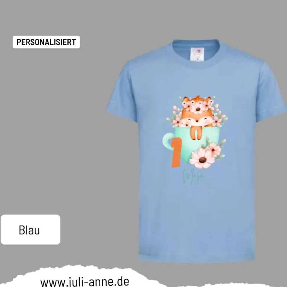 Personalisiertes Shirt GEBURTSTAG Zahl & Name personalisiert Fuchs in Tasse