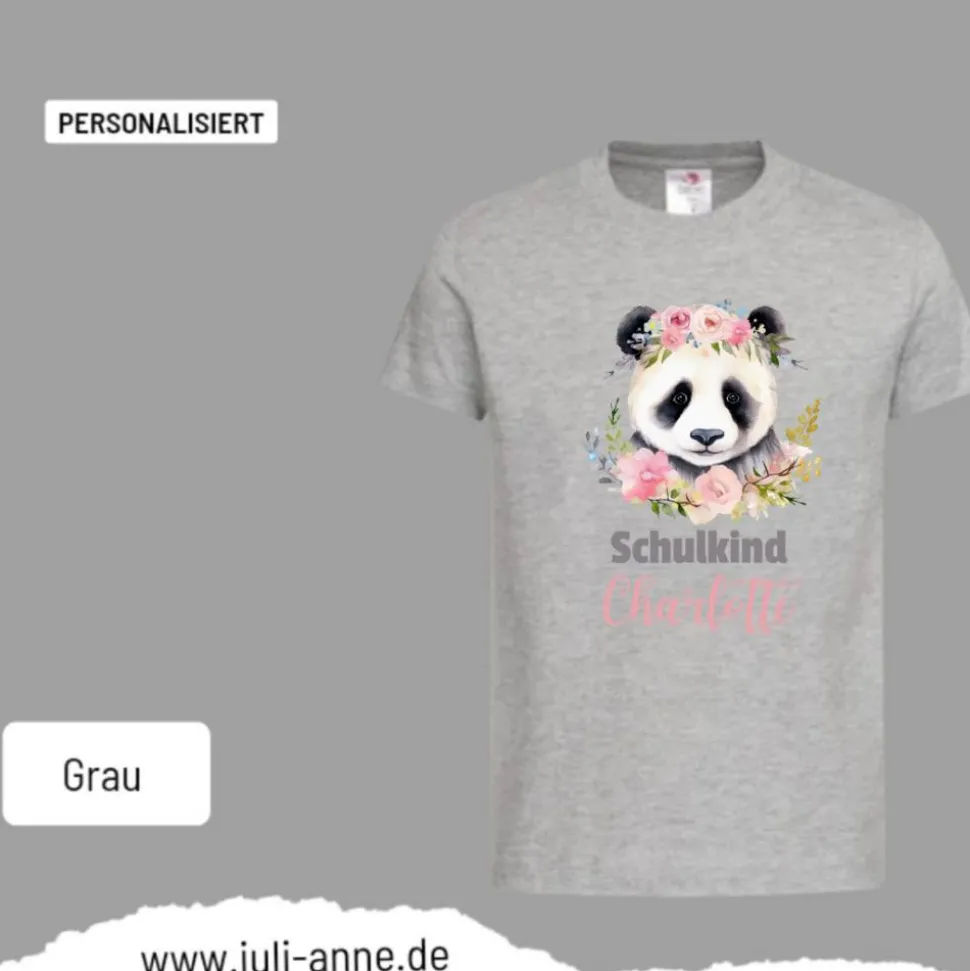 Personalisiertes Shirt SCHULKIND Name personalisiert Panda Blumen
