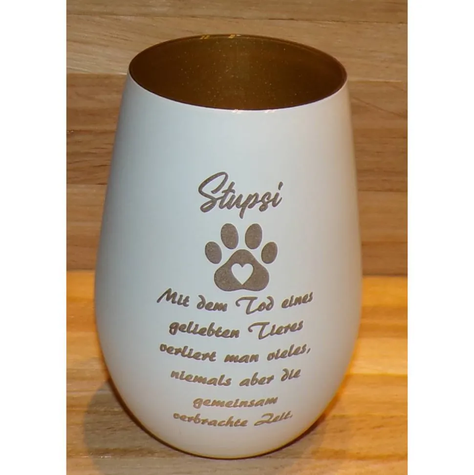 Verleihen Sie Ihrem Gedenklicht für Ihr Haustier eine persönliche Note und bewahren Sie die Erinnerung an die wundervolle Zeit, die Sie miteinander verbracht haben.