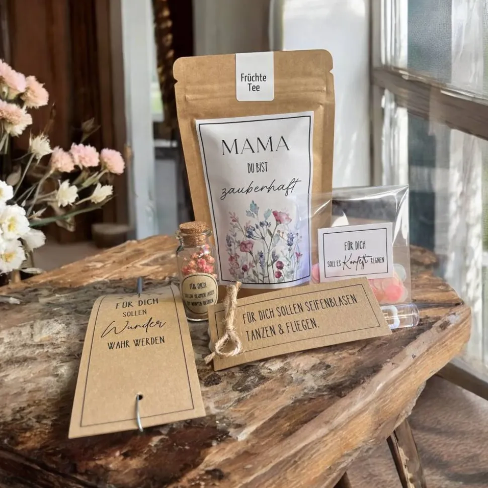 •Getränk mit Etikett: „Mama – Du bist zauberhaft“ (siehe Produktsicherheitsverordnung)