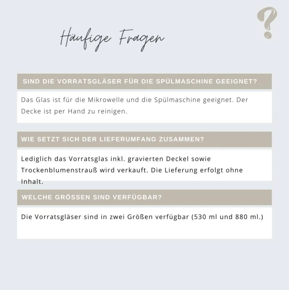 Die Vorratsgläser bieten wir in zwei unterschiedlichen Größen an: