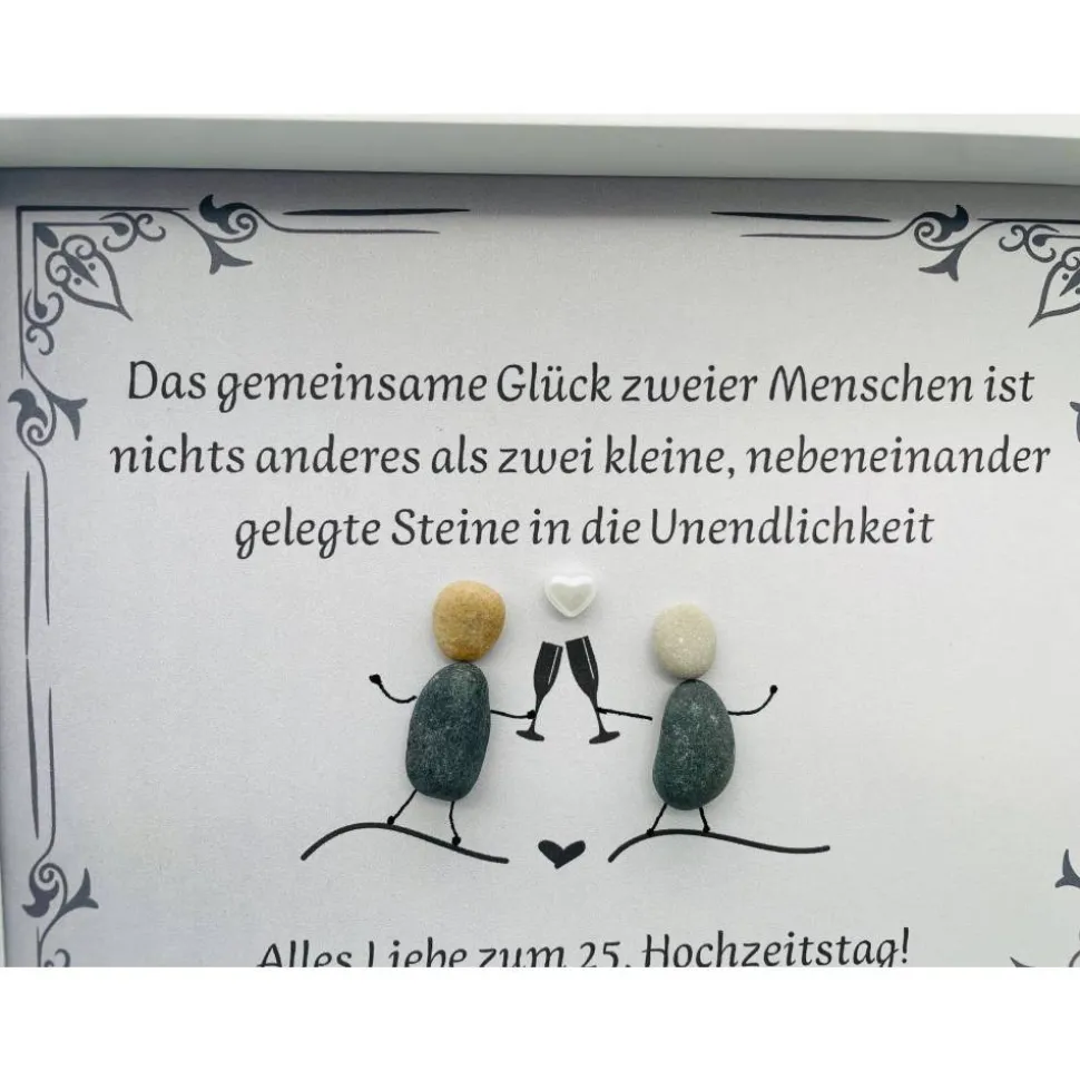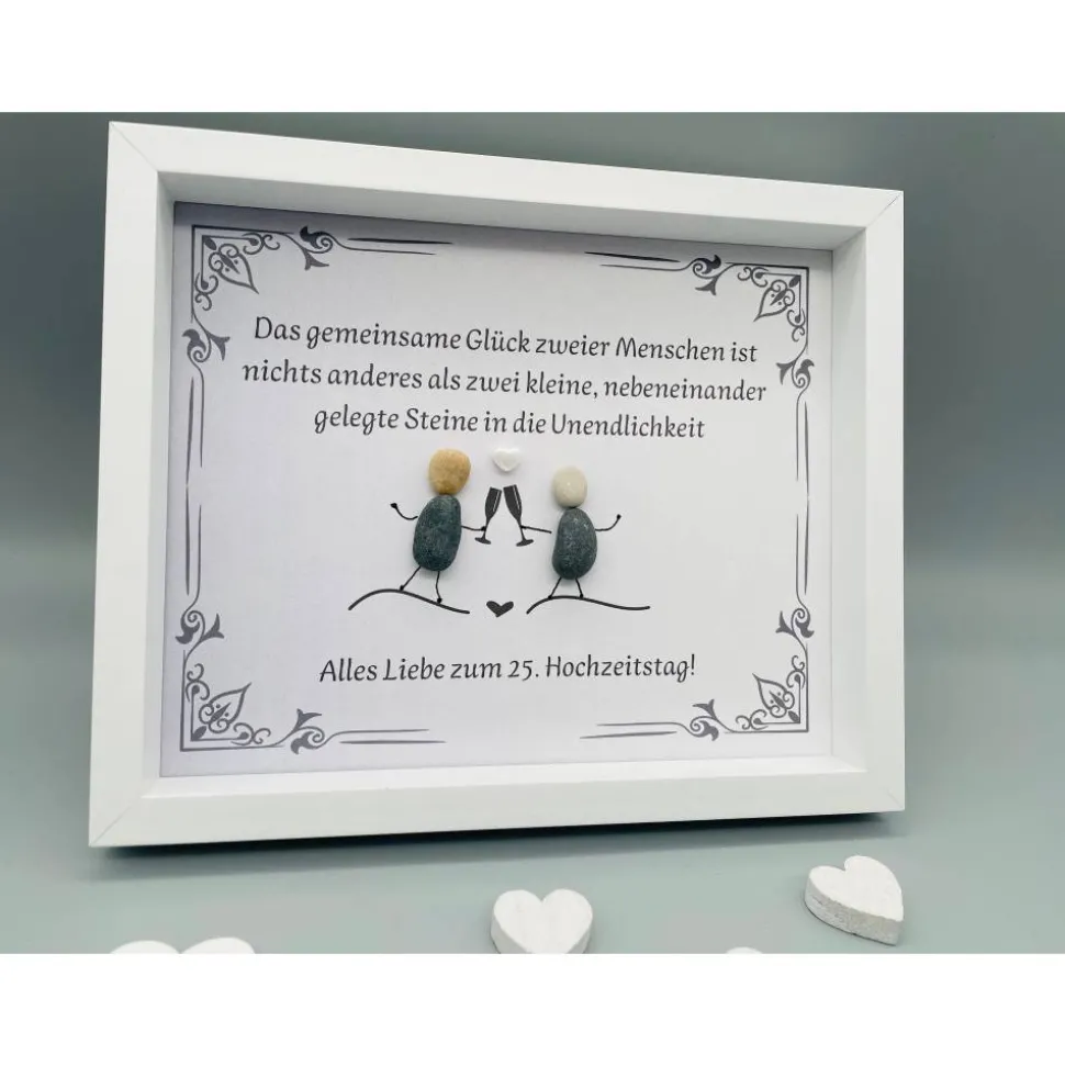Du suchst ein einzigartiges, liebevoll handgemachtes Geschenk zur silbernen Hochzeit? Dieses personalisierte Wandbild aus echten Steinen ist ein absolutes Highlight und verleiht jedem Raum eine besondere Atmosphäre. Jedes Bild wird individuell von Hand aus ausgewählten Materialien angefertigt und ist somit ein echtes Unikat – perfekt, um deinen Liebsten eine besondere Freude zu bereiten!