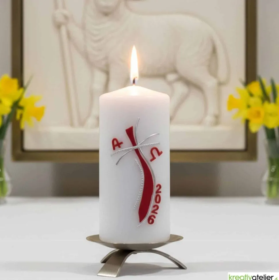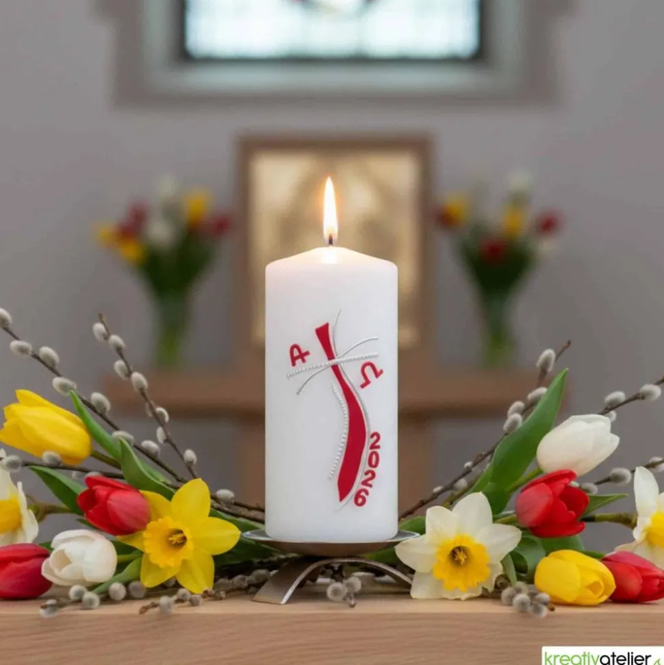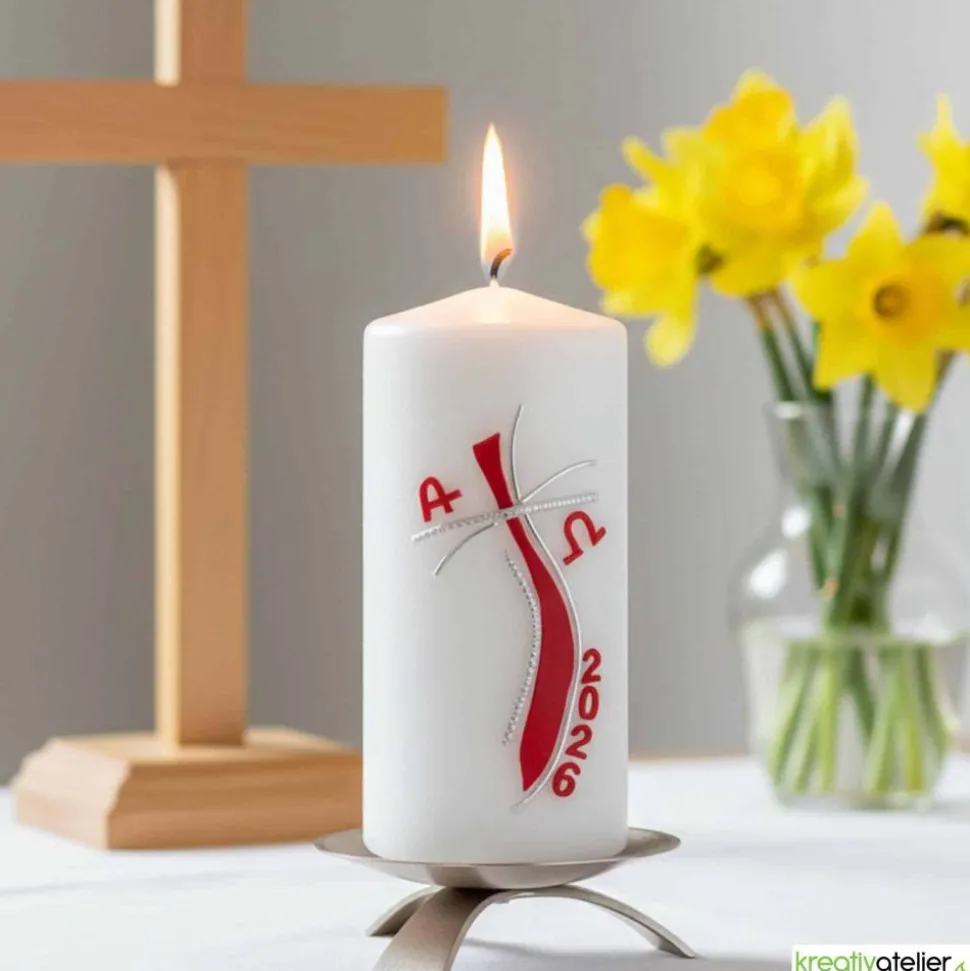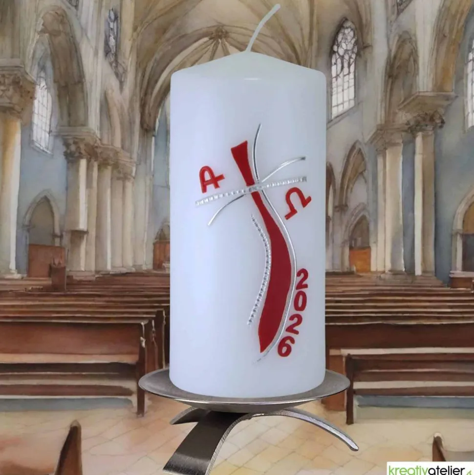 Die festliche christliche Osterkerze mit rotem Kreuz, strahlender Sonne, Alpha und Omega ist ein Kunstwerk, das die Schönheit und Bedeutung des Osterfestes zum Ausdruck bringt. Das rote Kreuz steht für das Leiden und den Tod Jesu, während die strahlende Sonne dessen Auferstehung symbolisiert und die Hoffnung auf ein ewiges Leben verkörpert. Alpha und Omega sind die ersten und letzten Buchstaben des griechischen Alphabets und stehen für den Anfang und das Ende, den Beginn eines neuen Lebens. Diese Kerze ist eine wunderbare Möglichkeit, das Osterfest zu feiern und die Bedeutung dieses wichtigen Ereignisses zu ehren.