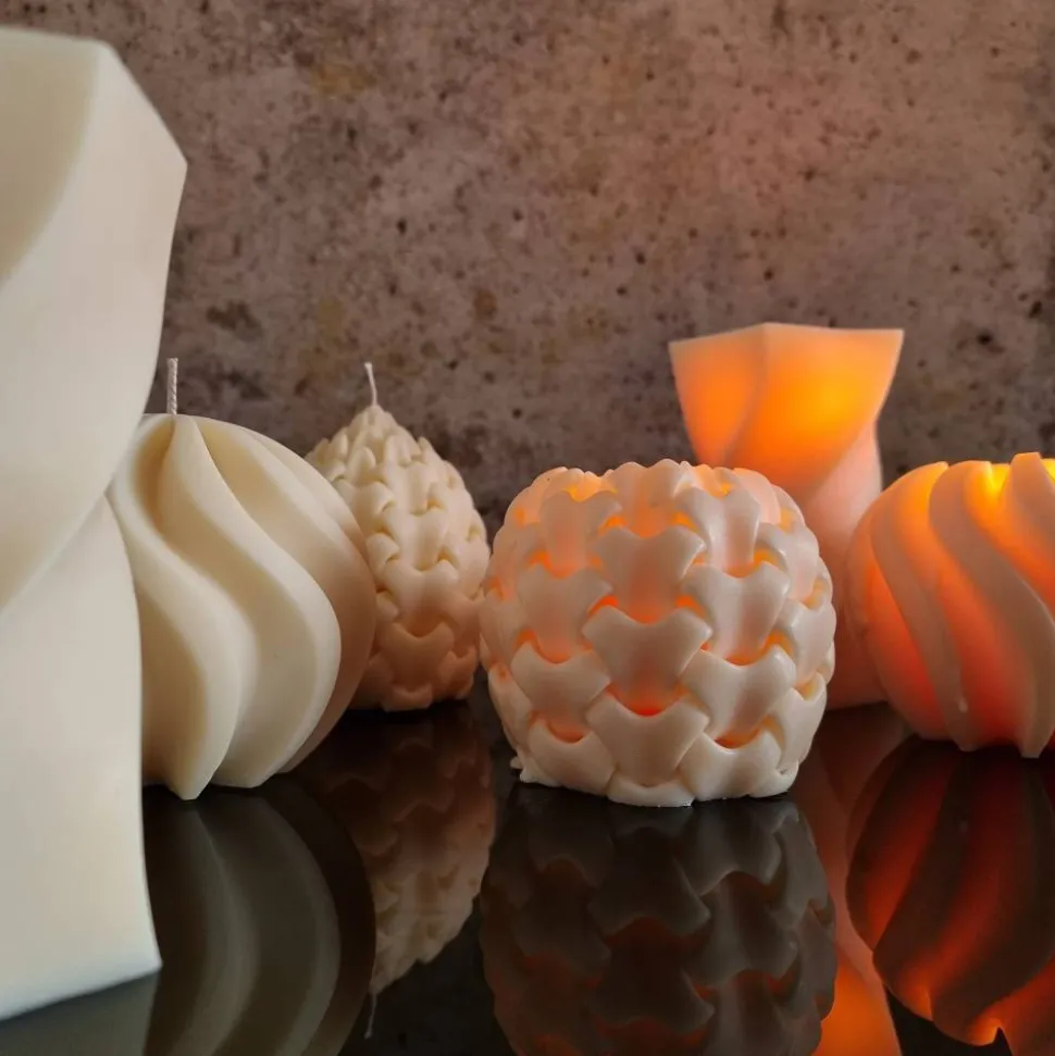 Bei besonders geformten Kerzen (z. B. Skulpturkerzen) kann das Wachs ungleichmäßig verlaufen – bitte stelle sicher, dass die Kerze auf einer geeigneten Unterlage steht, die überschüssiges Wachs auffängt.