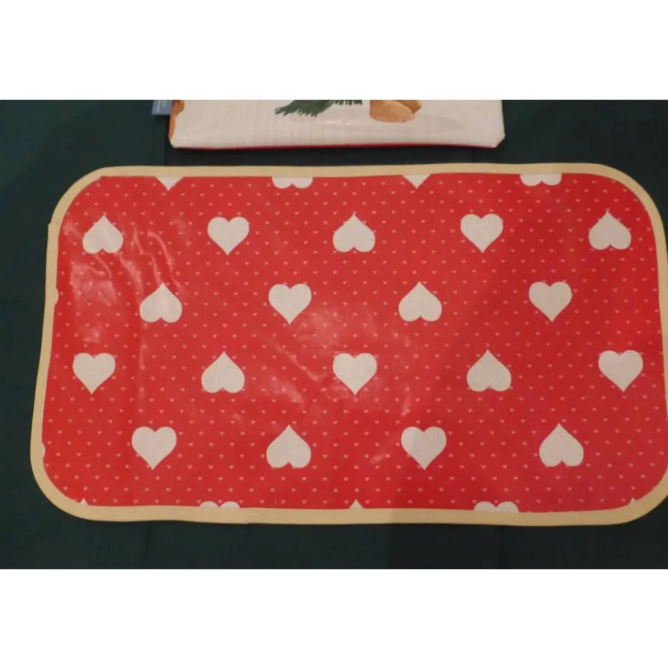 Auf der Rückseite ist rotes Wachstuch mit Herzen vernäht.