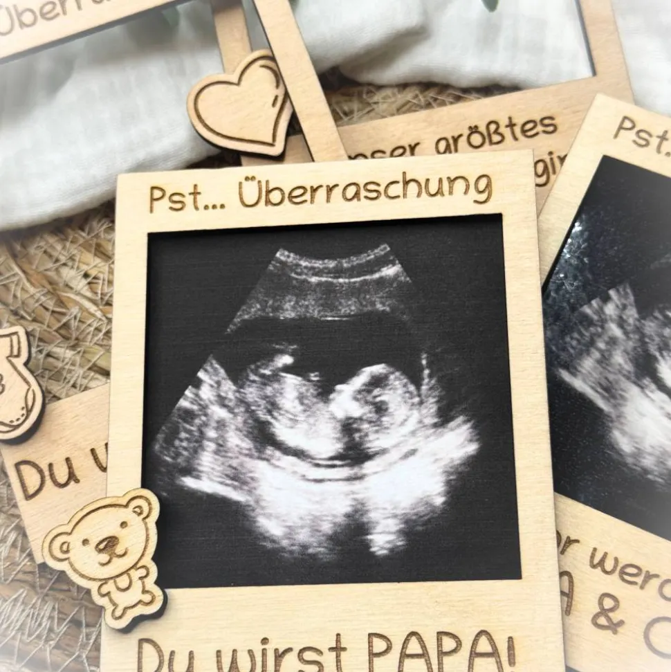 Manche Nachrichten sagt man nicht „nebenbei“. Dieser Holzrahmen im Polaroid-Look setzt Dein Ultraschallbild (oder ein kleines Foto) bewusst in Szene – ohne viel Schnickschnack, aber mit Gefühl. Durch die klare Optik steht Deine Botschaft im Mittelpunkt, egal ob Du Deinen Partner, die Großeltern oder ein zukünftiges Patenonkel-/Tantenherz überraschen möchtest.