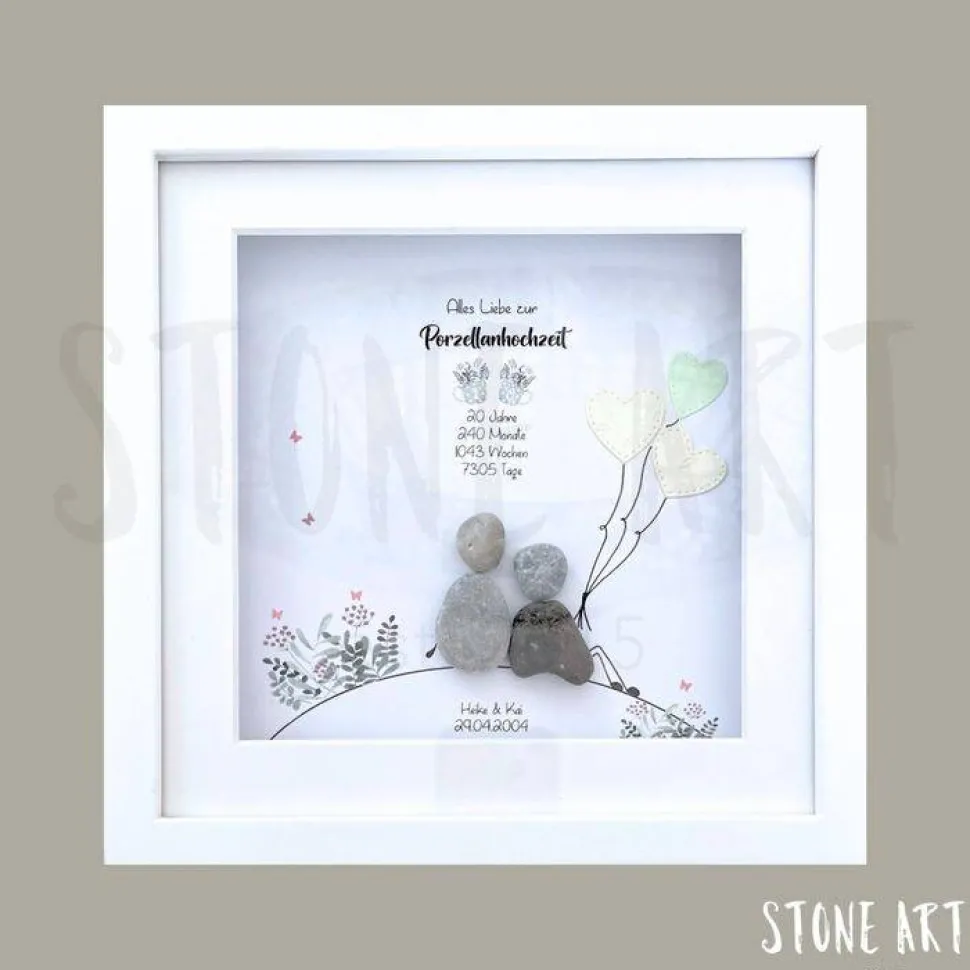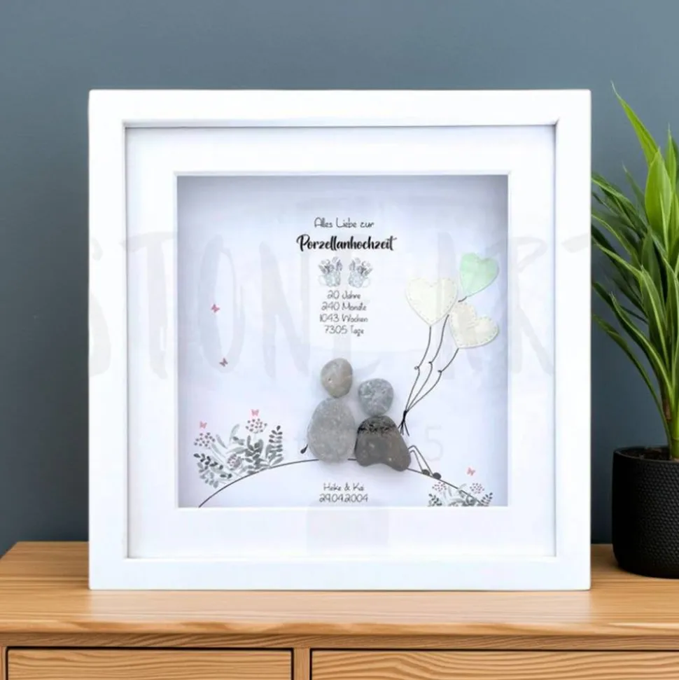 Feiere deine Porzellanhochzeit mit einem einzigartigen, handgemachten Steinbild!