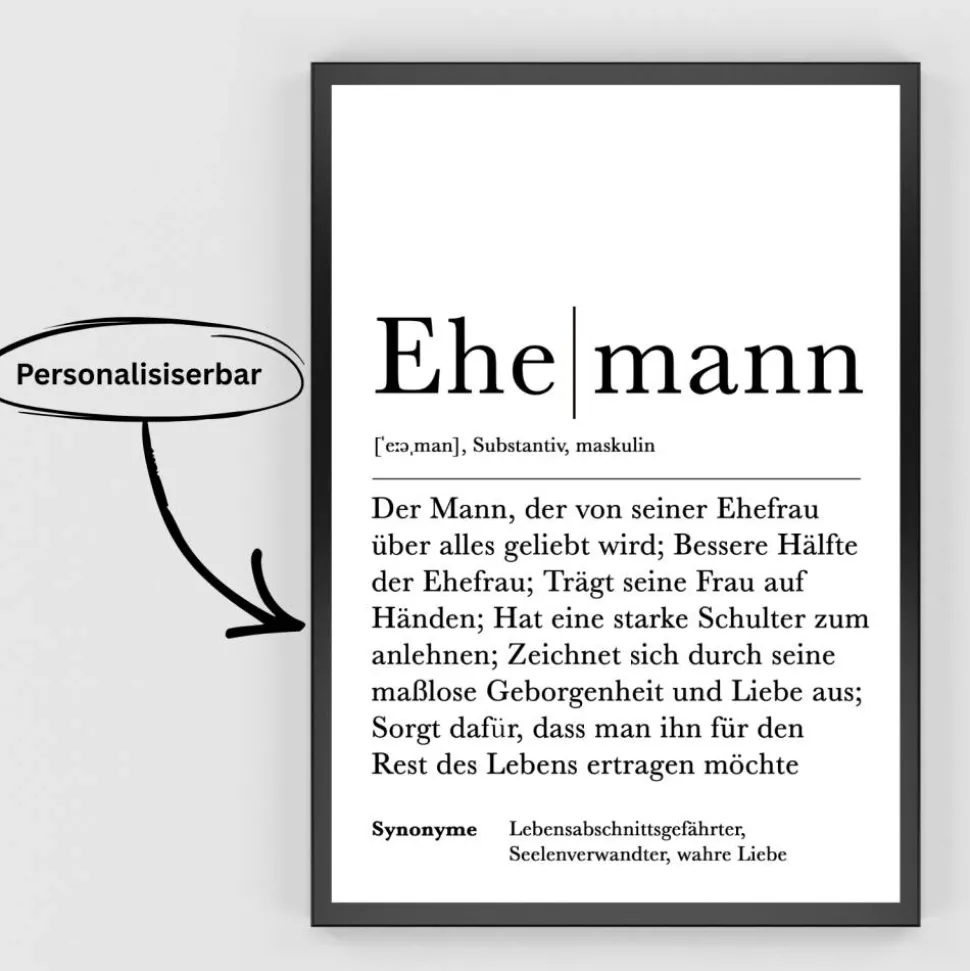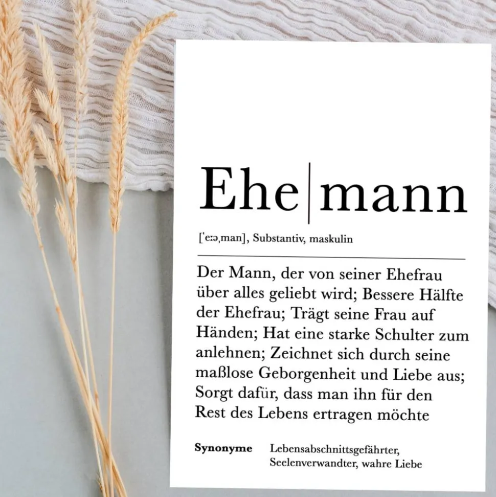 Poster EHEMANN | Hochzeit | Verlobung | Geschenk | Definition | Duden | Mr & Mrs | Hochzeitsgeschenk