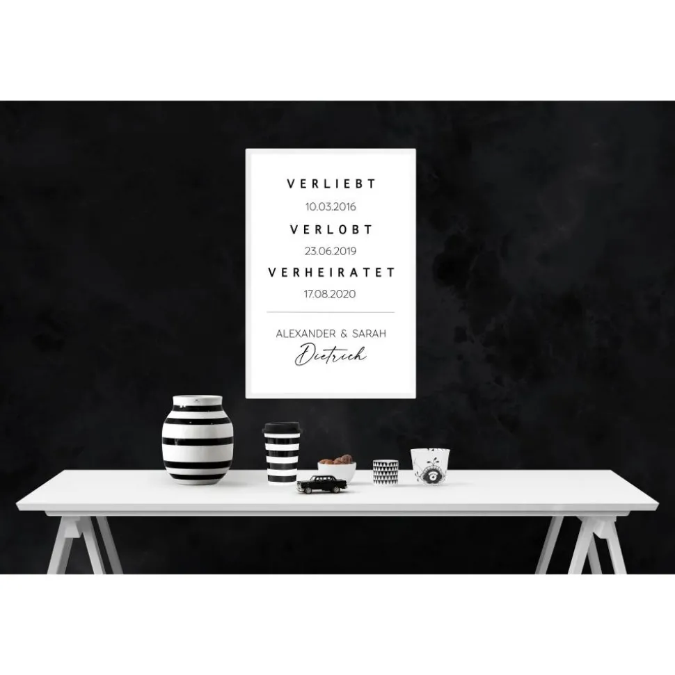 Poster VERLIEBT VERLOBT VERHEIRATET mit Datum | Personalisiert | Hochzeitsgeschenk | Kunstdruck | Geschenk Brautpaar | S