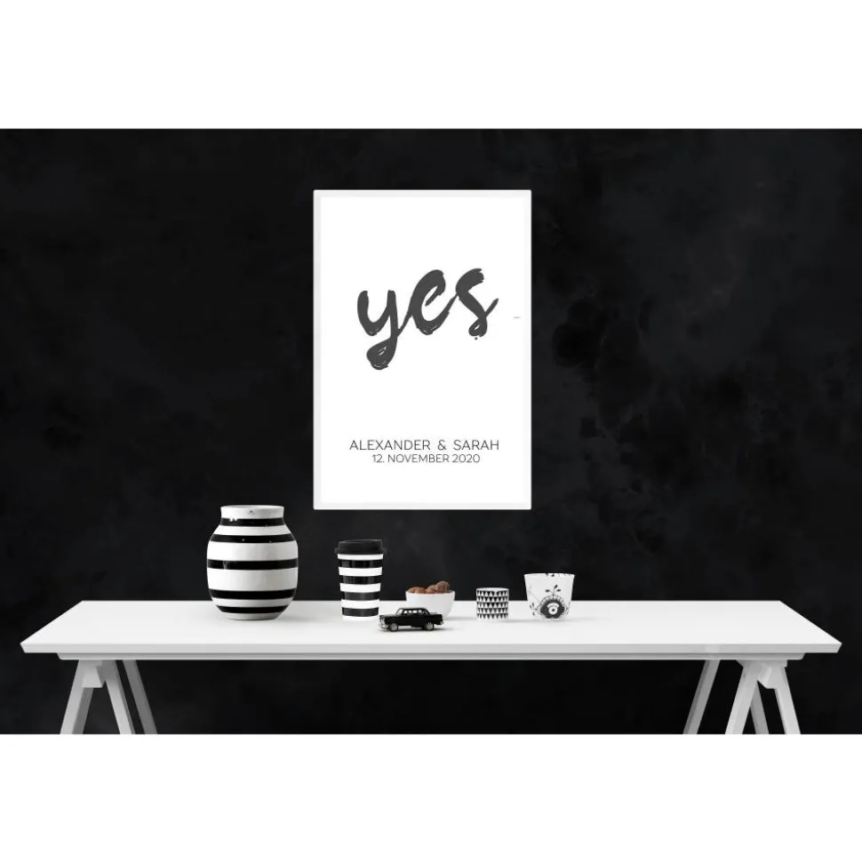 Poster YES mit Namen und Hochzeitstag | Personalisiert | Hochzeitsgeschenk | Hochzeit | Brautpaar | Namen | Digitaldruck