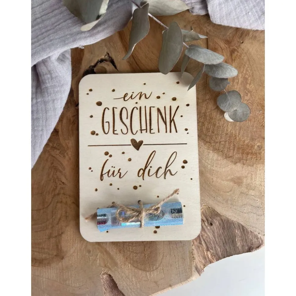 Die Holzkarten sind in verschiedenen Design-Optionen erhältlich und können für viele Anlässe verwendet werden – als Geldgeschenk, Wunscherfüller, Kommunion- oder Taufgeschenk sowie zum Geburtstag oder einfach so als persönliche Gratulation.