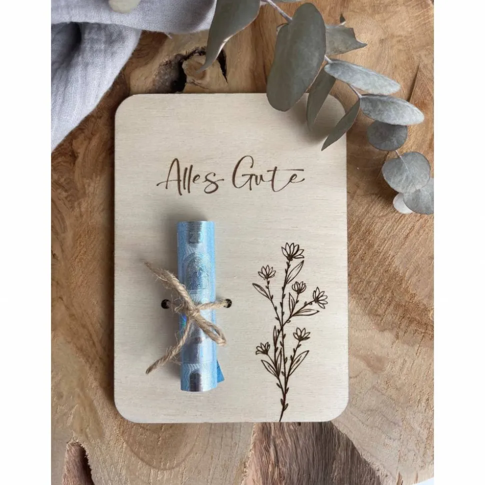 Die Holzkarten sind in verschiedenen Design-Optionen erhältlich und können für viele Anlässe verwendet werden – als Geldgeschenk, Wunscherfüller, Kommunion- oder Taufgeschenk sowie zum Geburtstag oder einfach so als persönliche Gratulation.