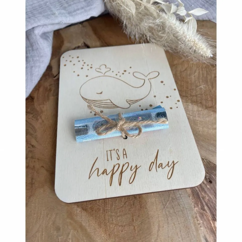 Die Holzkarten sind in verschiedenen Design-Optionen erhältlich und können für viele Anlässe verwendet werden – als Geldgeschenk, Wunscherfüller, Kommunion- oder Taufgeschenk sowie zum Geburtstag oder einfach so als persönliche Gratulation.