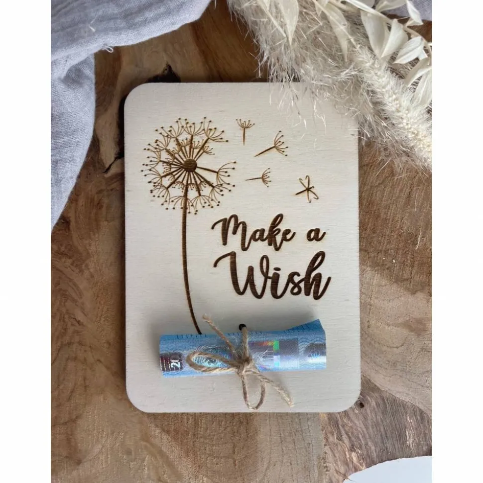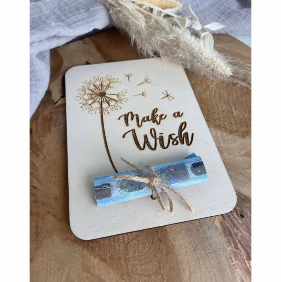 Postkarte aus Holz / Grußkarte / Holzkarte / Geldgeschenk / Wunscherfüller Geburtstagskarte Make a Wish