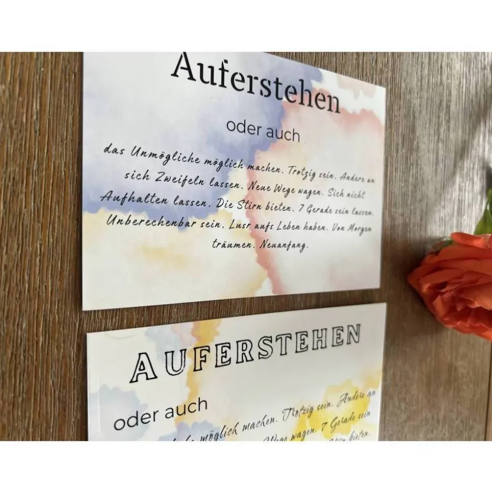 Diese selbstgestaltete Postkarte im sanften Watercolour-Stil ist ein echtes Highlight für alle, die das Osterfest mit modernen Impulsen und ästhetischem Anspruch feiern möchten. Der tiefsinnige Text interpretiert „Auferstehen“ als eine Einladung zur Lebensfreude, zum Mut und zum persönlichen Neuanfang. Ein Zusammenspiel aus inspirierendem Inhalt, harmonischen Farben und durchdachter Qualität!