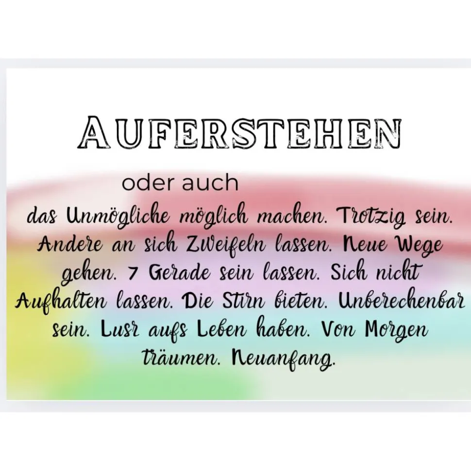 Diese selbstgestaltete Postkarte ist ein echtes Unikat. Sie verbindet einen tiefsinnigen, motivierenden Text mit einer modernen Optik, die sofort Leichtigkeit und Freude verbreitet. Perfekt für alle, die das Wort „Auferstehen“ als persönlichen Neuanfang, Kraftquelle oder mutiges Statement interpretieren möchten.