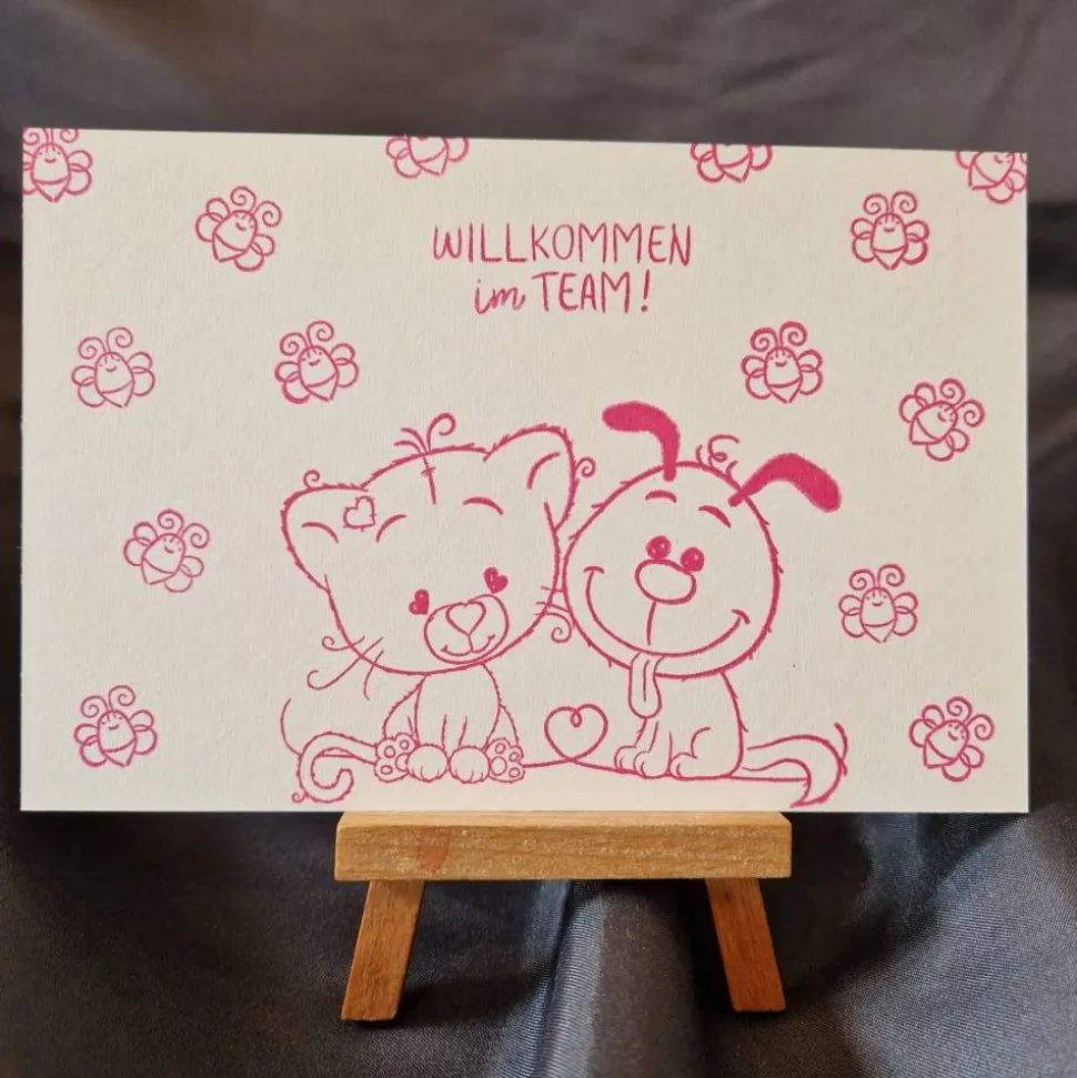 süßesten Postkarte zur Geburt mit niedlichen Hunden und Katzen finden kannst.