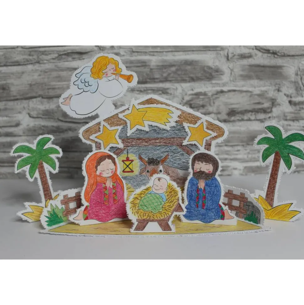 ihre eigene Weihnachtskrippe zu basteln und sie farblich nach ihren Wünschen gestalten zu lassen!