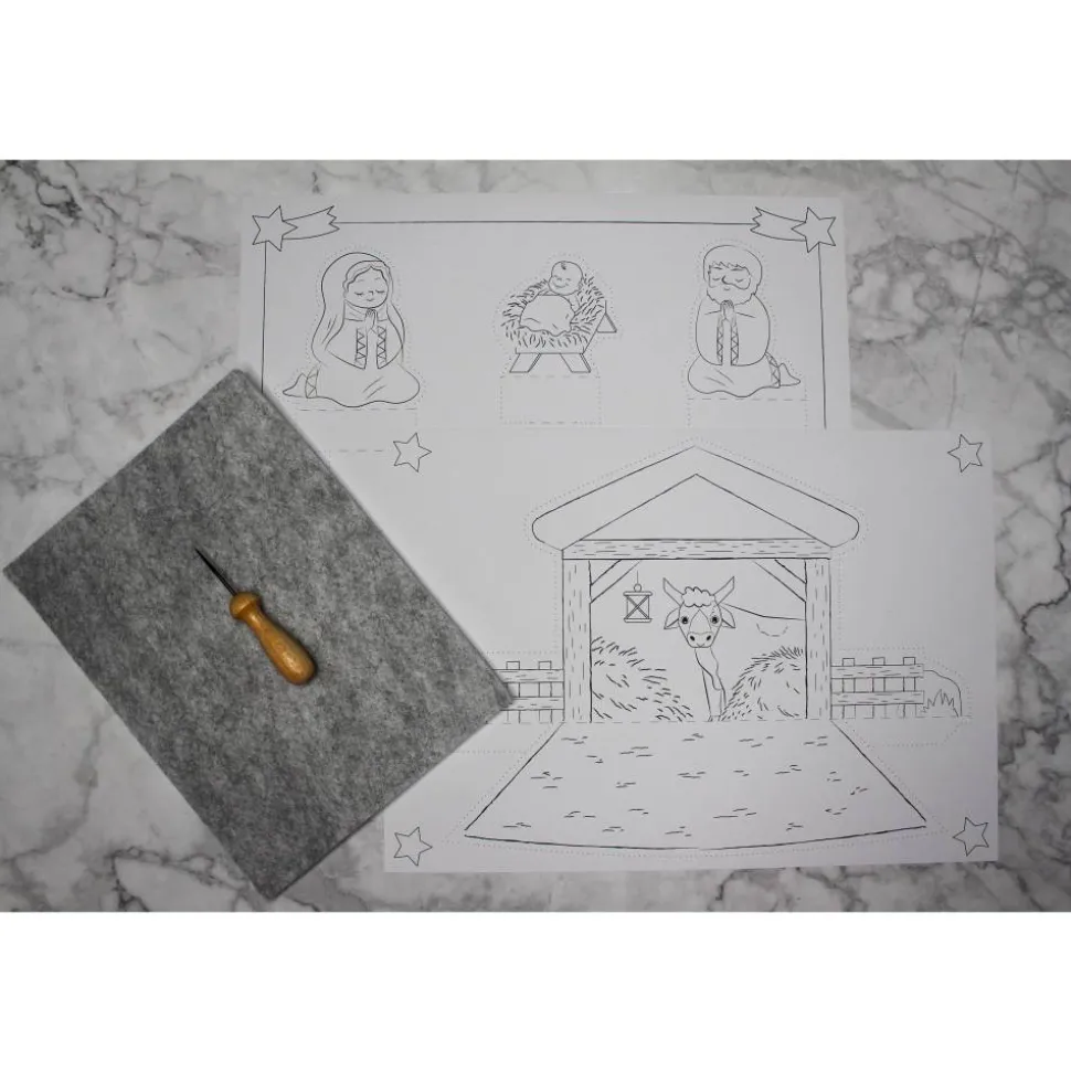 In diesem Prickel-Set der Marke Ursus®, sind komplette Vorlagen zum Basteln einer Weihnachtskrippe und Figuren enthalten, inklusive Bastelanleitung.