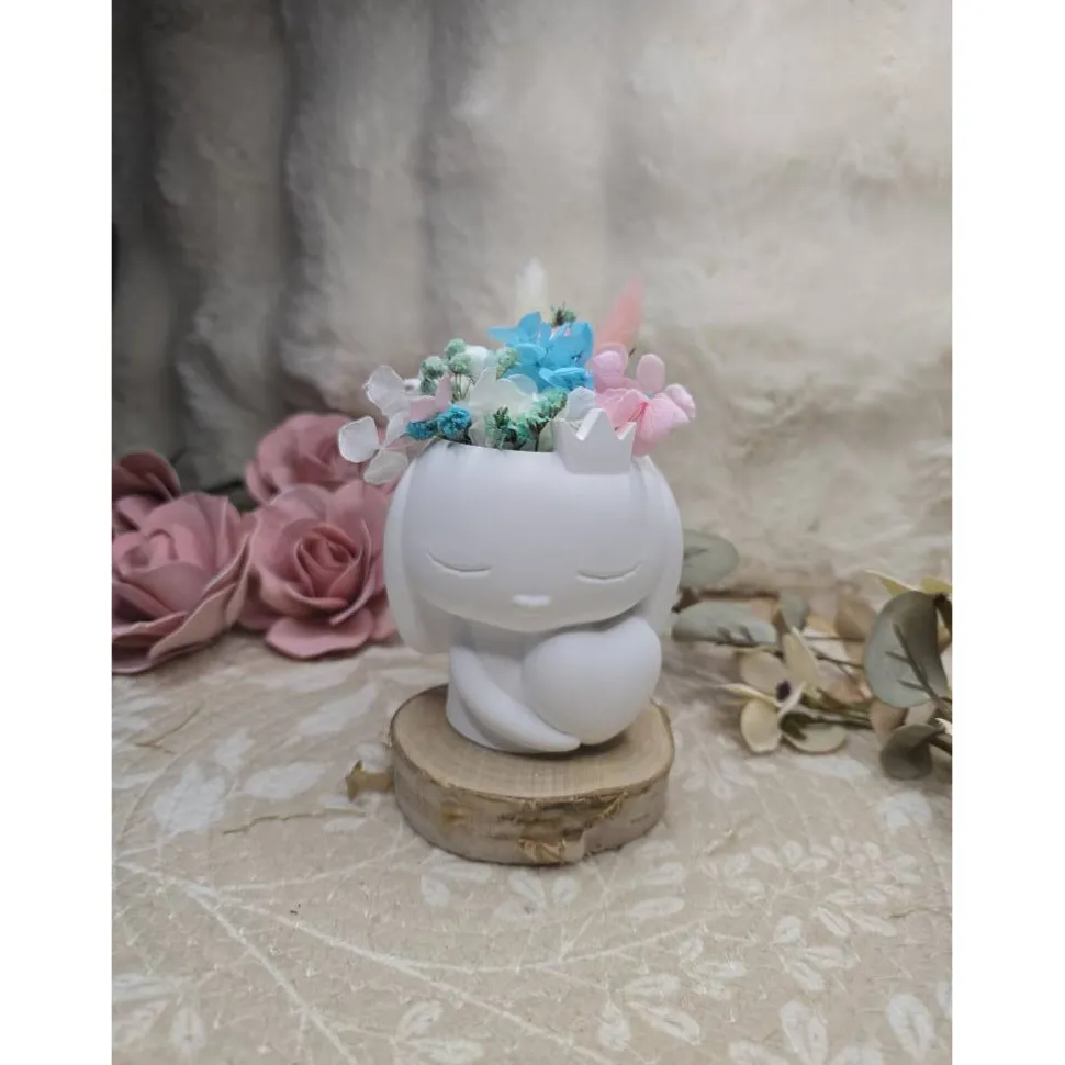 Jede Figur wird aus hochwertigem Raysin gefertigt und mit liebevollen Details versehen. Der Kopf ist mit Steckschaum gefüllt und jede Blume wird von Hand arrangiert. Dadurch ist jede Prinzessin Hoppel ein Unikat – so einzigartig wie du oder die Person, der du sie schenkst.