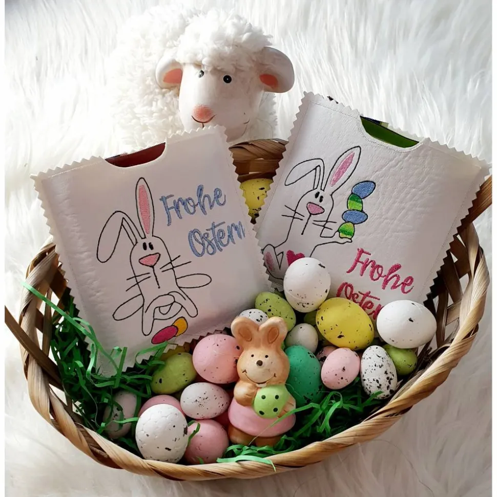 Tolle Ostermotive sind auf dieser Geschenkverpackung für die quadratischen Schokoladen der Hingucker.