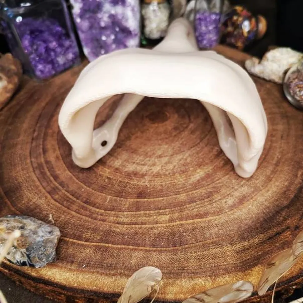 Der Schädel besteht aus Material in einem Knochenton. Er kann noch individuell durch dich bemalt werden.