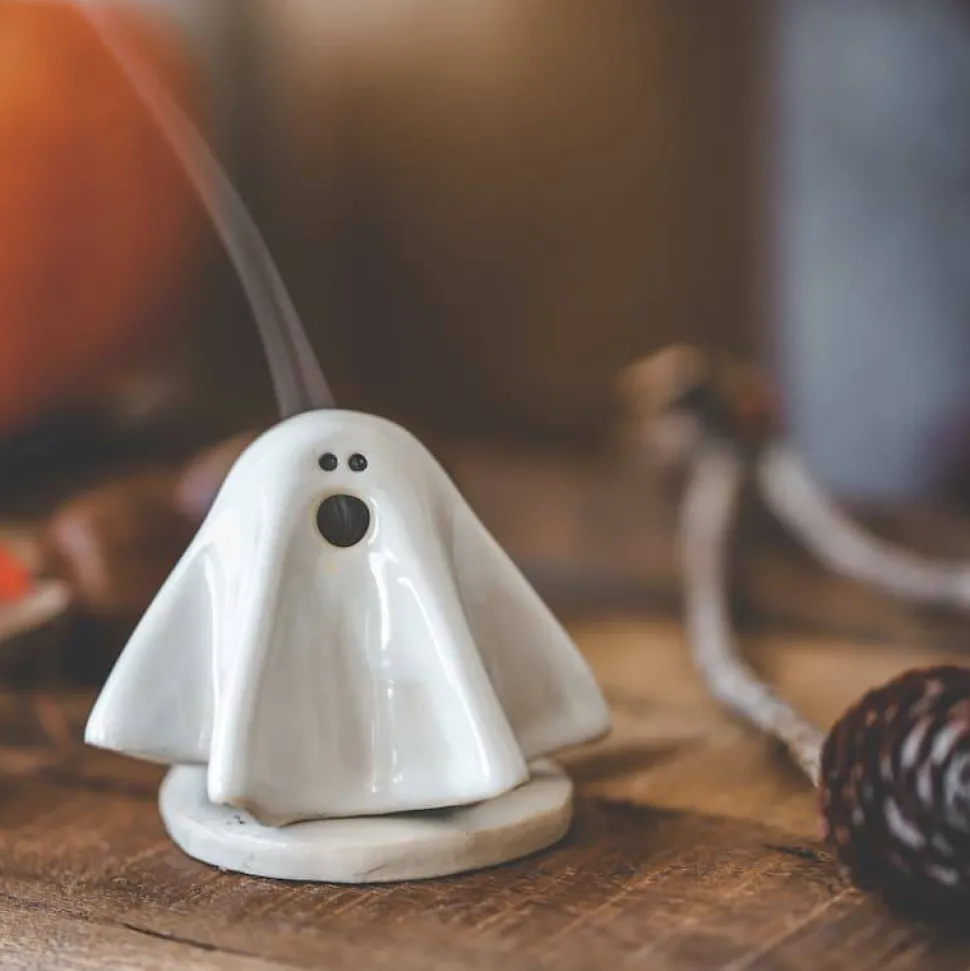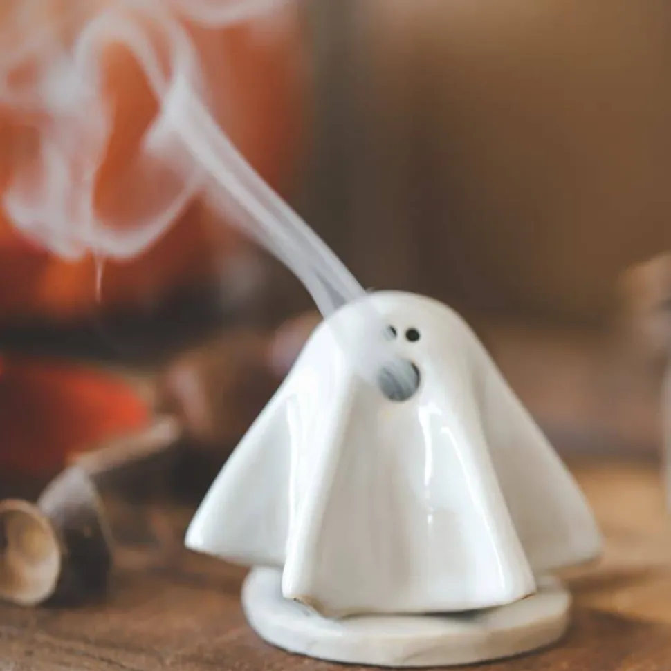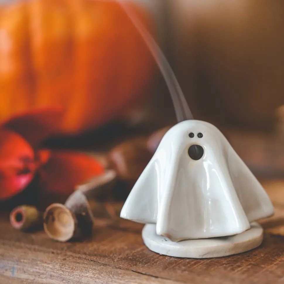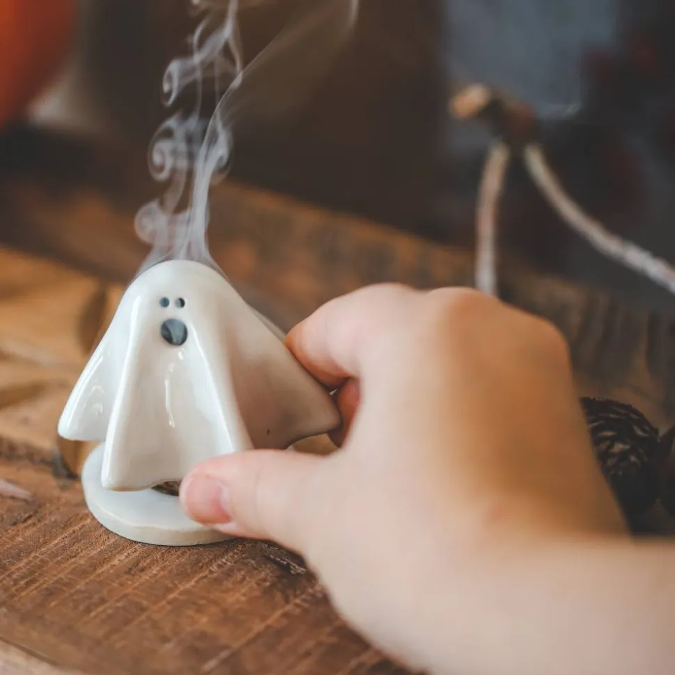 Passend zu Halloween gibt es dieses kleine Räuchergespenst. Nebel umwabert mystisch das kleine Gespenst. Aus dem Mund und unter dem Gespenst wabert der Rauch um das Gespenst herum. Süßes Highlight als Halloweendeko. Da das Gespenst zierlich ist, benötigst Du kleine Räucherkerzen für das Gespenst, passende Räucherkegel biete ich in meinem Shop an.