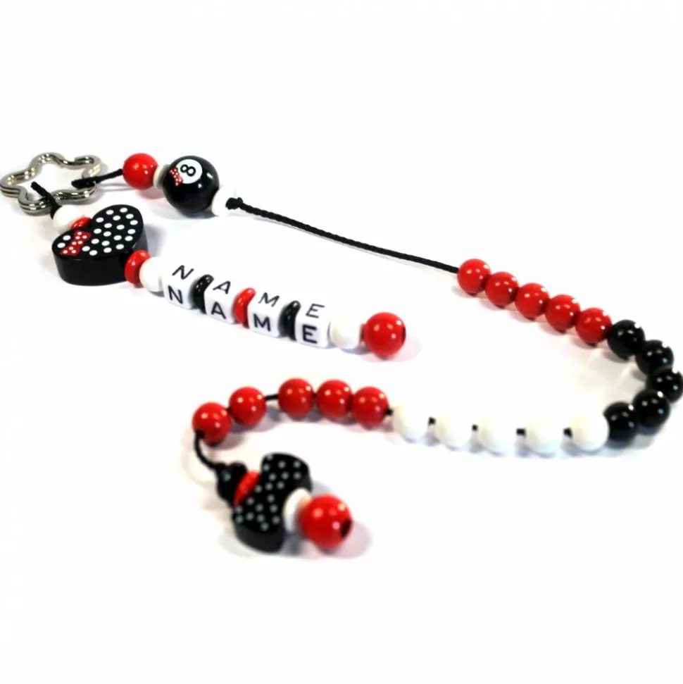Verwendete Materialien: Holzperlen, Motivperlen, Kunststoffbuchstaben, PP Kordel, Schlüsselring