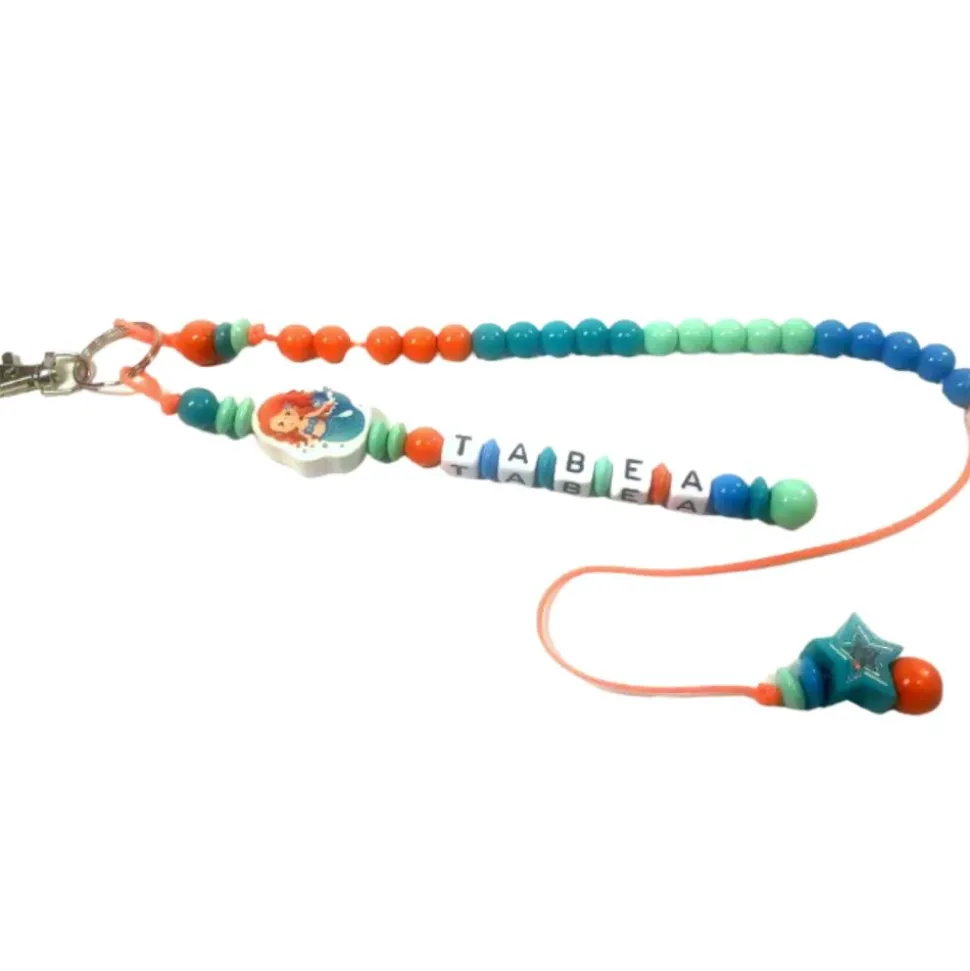 Verwendete Materialien: Holzperlen, Motivperlen, Kunststoffbuchstaben, PP Kordel, Schlüsselring