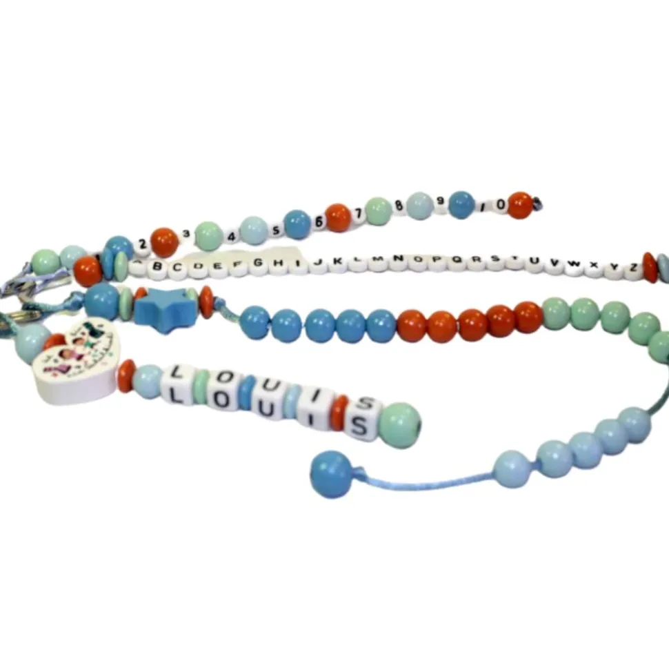 Die 20 speichelfesten, 10 mm Holzperlen sind in Fünfergruppen angeordnet.