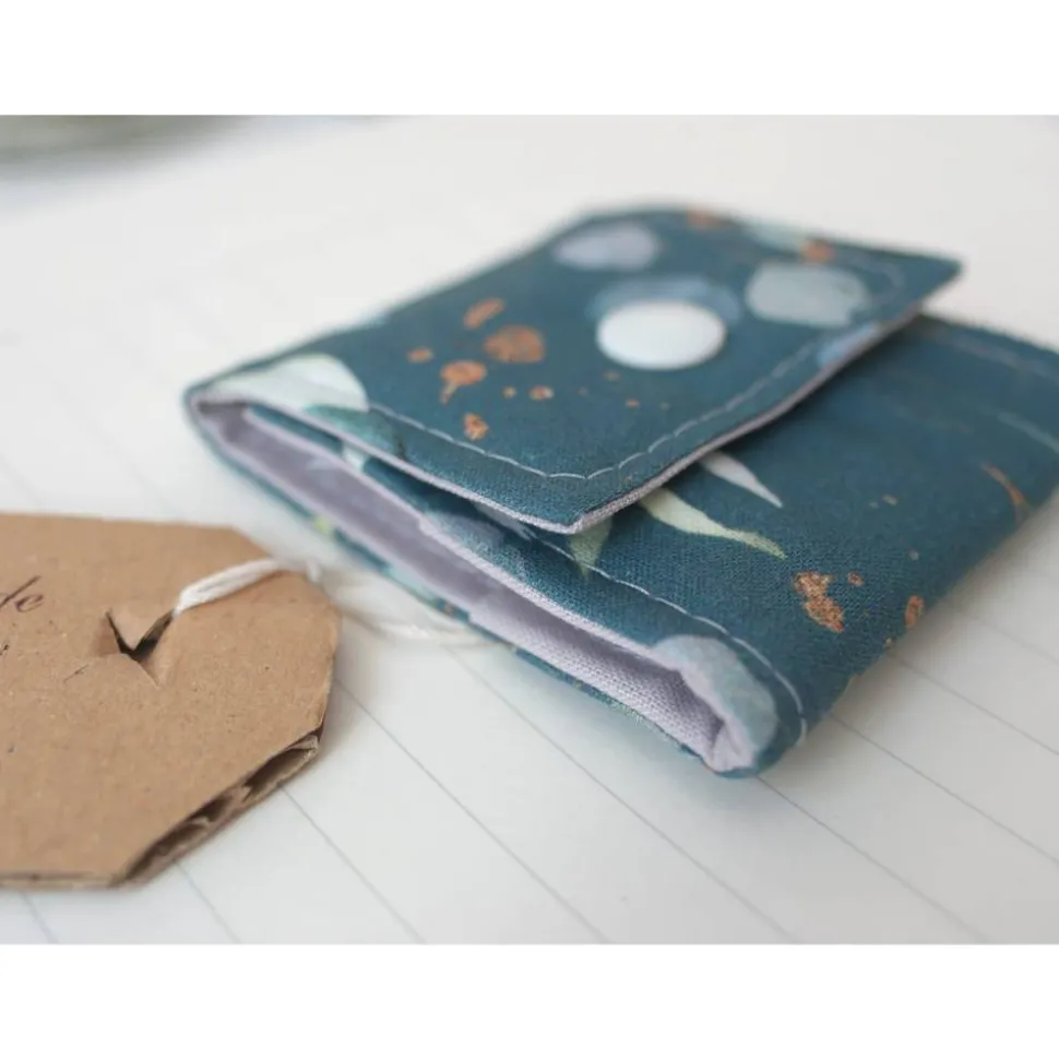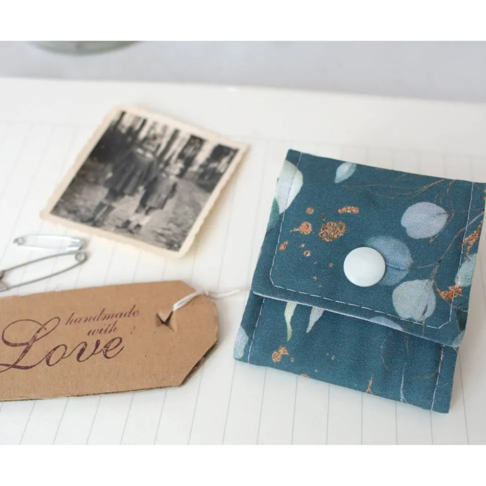 Das Täschchen besteht aus zwei verschiedenen Baumwollstoffen sowie Volumenvlies, das zur Verstärkung dient und das Täschchen schön griffig macht.
