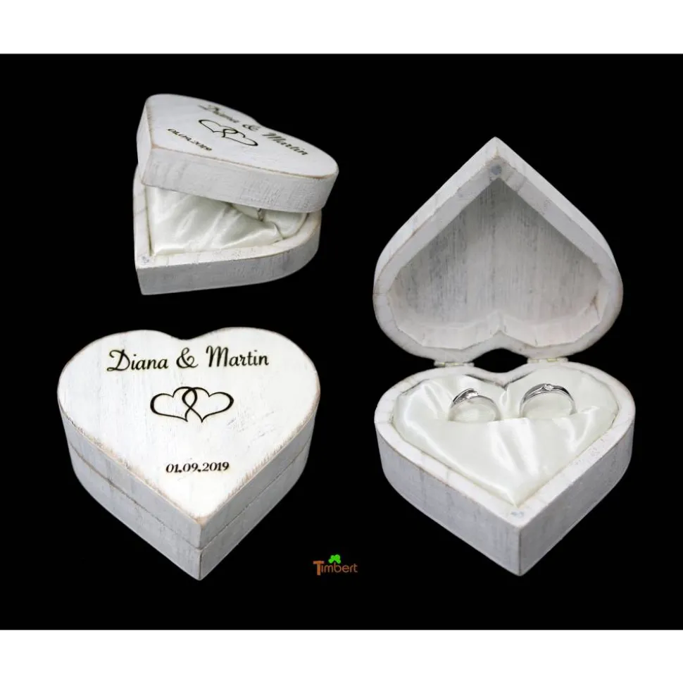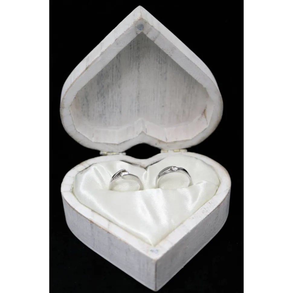 1 x Ringkissen im weißen Holzherz (personalisiert)