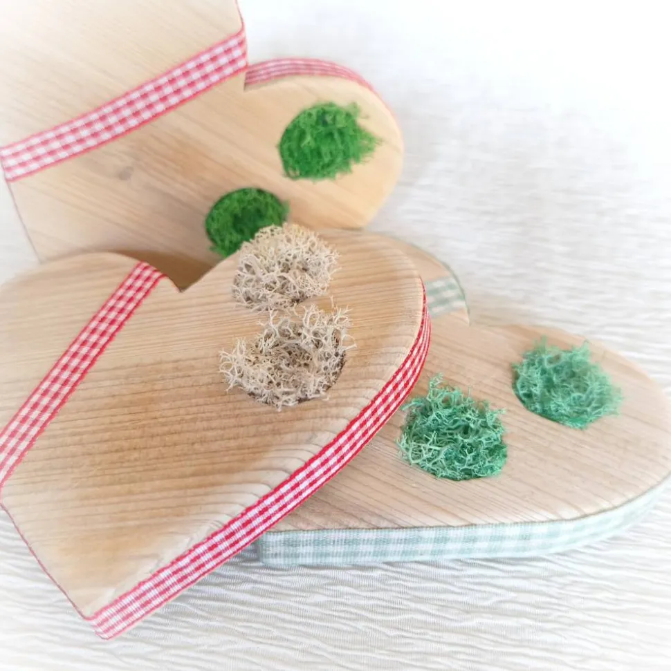Dieses Ringkissen aus Holz in Herzform verbindet schlichte Natürlichkeit mit einem liebevollen Detailkonzept. Das unbehandelte Nadelholz und das karierte Band verleihen ihm einen ruhigen, romantischen Landhauscharakter.