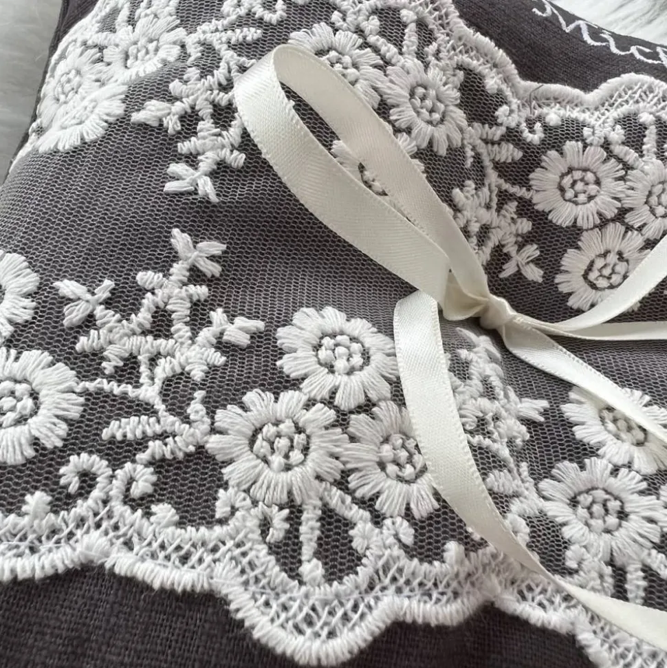 liebevoll genähtes Ringkissen mit einer wunderschönen Spitze im Vintage-Stil – durch die Bestickung ist jedes Trägerkissen ein Unikat. Perfekt für diesen ganz besonderen Tag ❤️