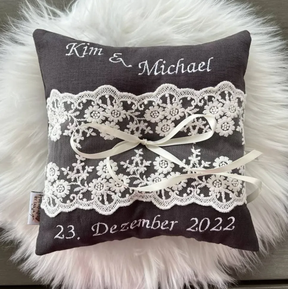 ➡️ Wahlweise nähe ich das Ringkissen in dunkelgrau oder in beige.